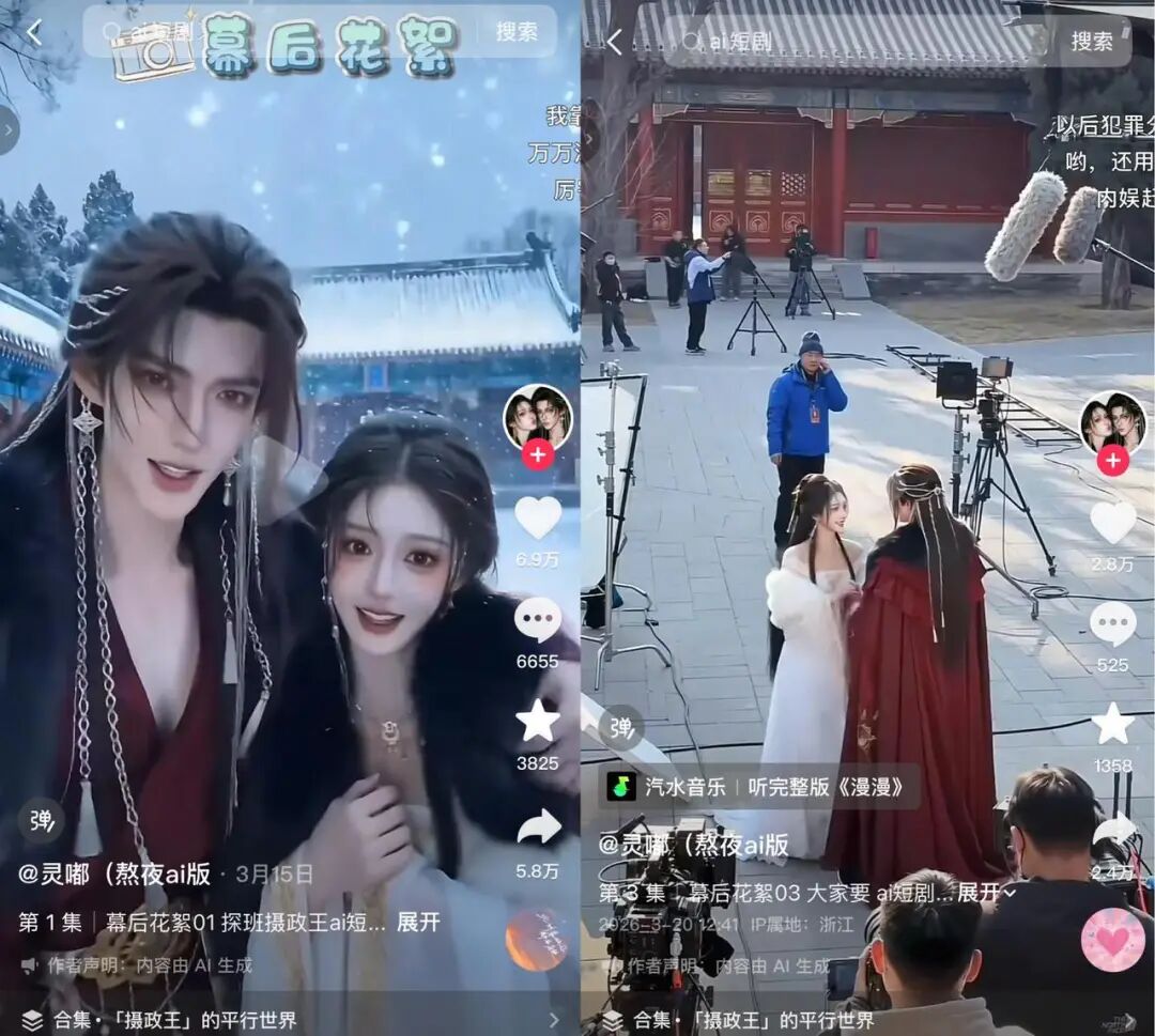 博主@灵嘟(熬夜ai版,自3月6日起发布了AI短剧《摄政王》,每集时长在12秒—30秒左右。