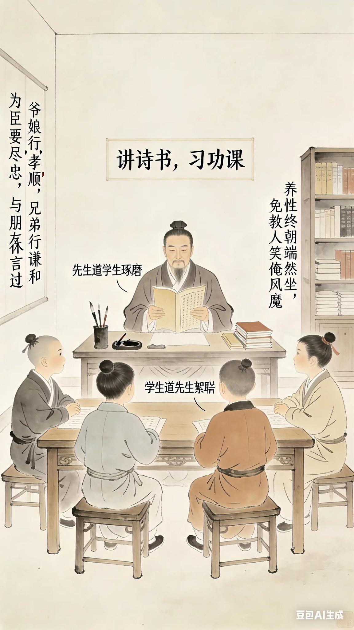 《中吕》普天乐嘲西席、张鸣善。 讲诗书, 习功课。 爷娘行"孝顺, 兄弟行谦和。 为臣要尽忠, 与朋友休言过。 养性终朝端然坐, 免教人笑俺风魔。 先生道学生琢磨。 学生道先生絮聒。 《嘲私塾先生》现译: 老先生整天教着诗书礼乐,要求学生孝顺爹娘、兄弟和睦。 当臣子要尽忠,交朋友莫说错。整天板正坐着修身养性,免得被人笑癫狂。 先生总说学生要细琢磨,学生嫌先生太啰嗦,主人家夹在中间左右为难——这私塾里的三方博弈,活脱脱一幅古代教育浮世绘。 古诗词 天天古诗词 你记得最深的一首古诗词是什么 你最喜欢的一句古诗词是什么 明清思想家 红楼梦予曲 如梦令·嘲 元朝散曲家 诗词应和 闸中诗 古散曲