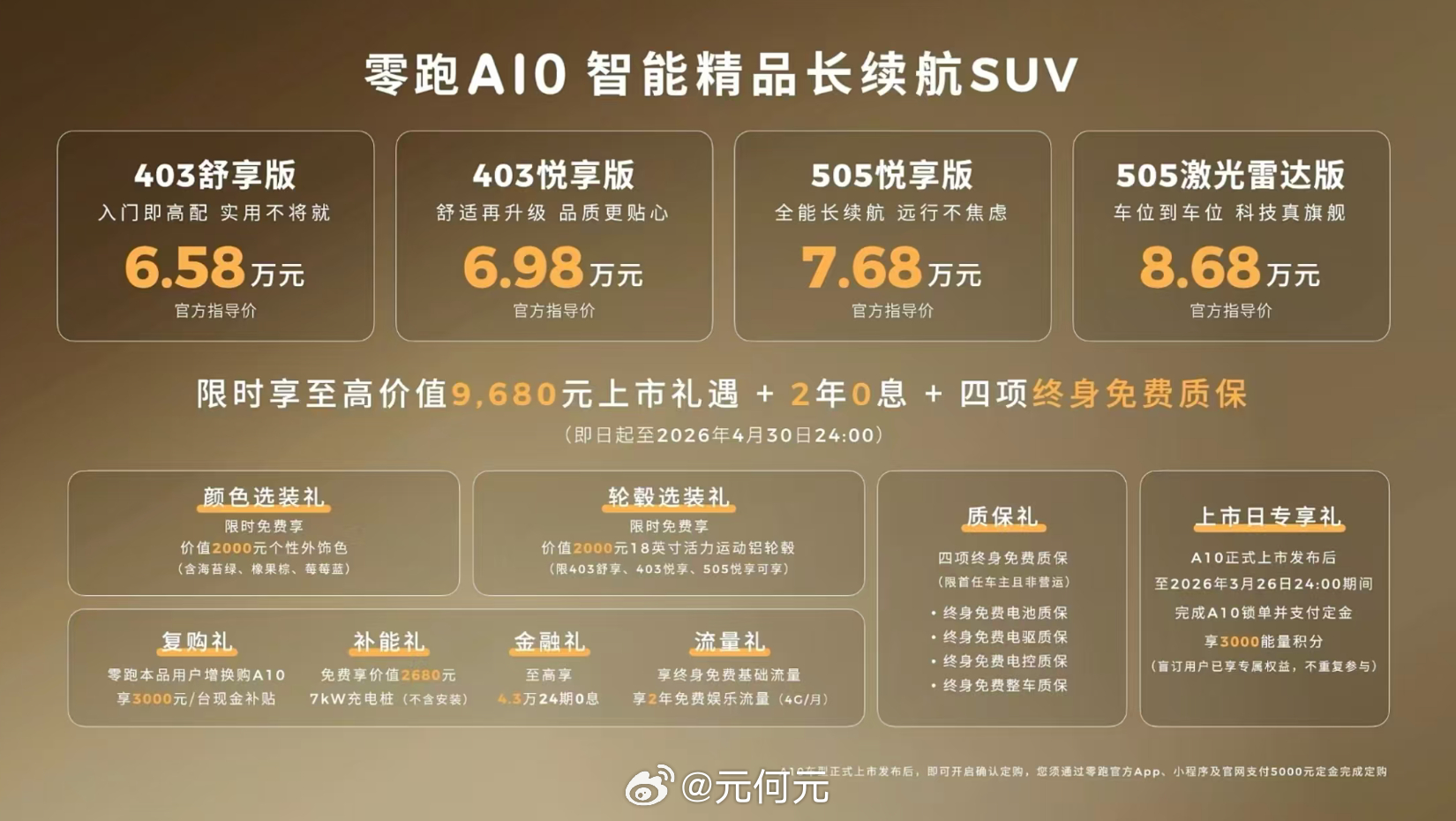 零跑爆款A10,6.58万元~8.68万元。顶配有激光雷达,和次顶配(不带激光雷达)的都是505km续航的。各位觉得咋样?陈都灵聊宠物出行太共情了