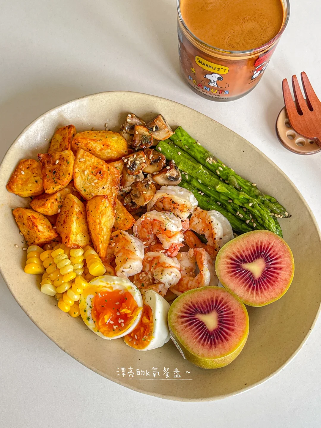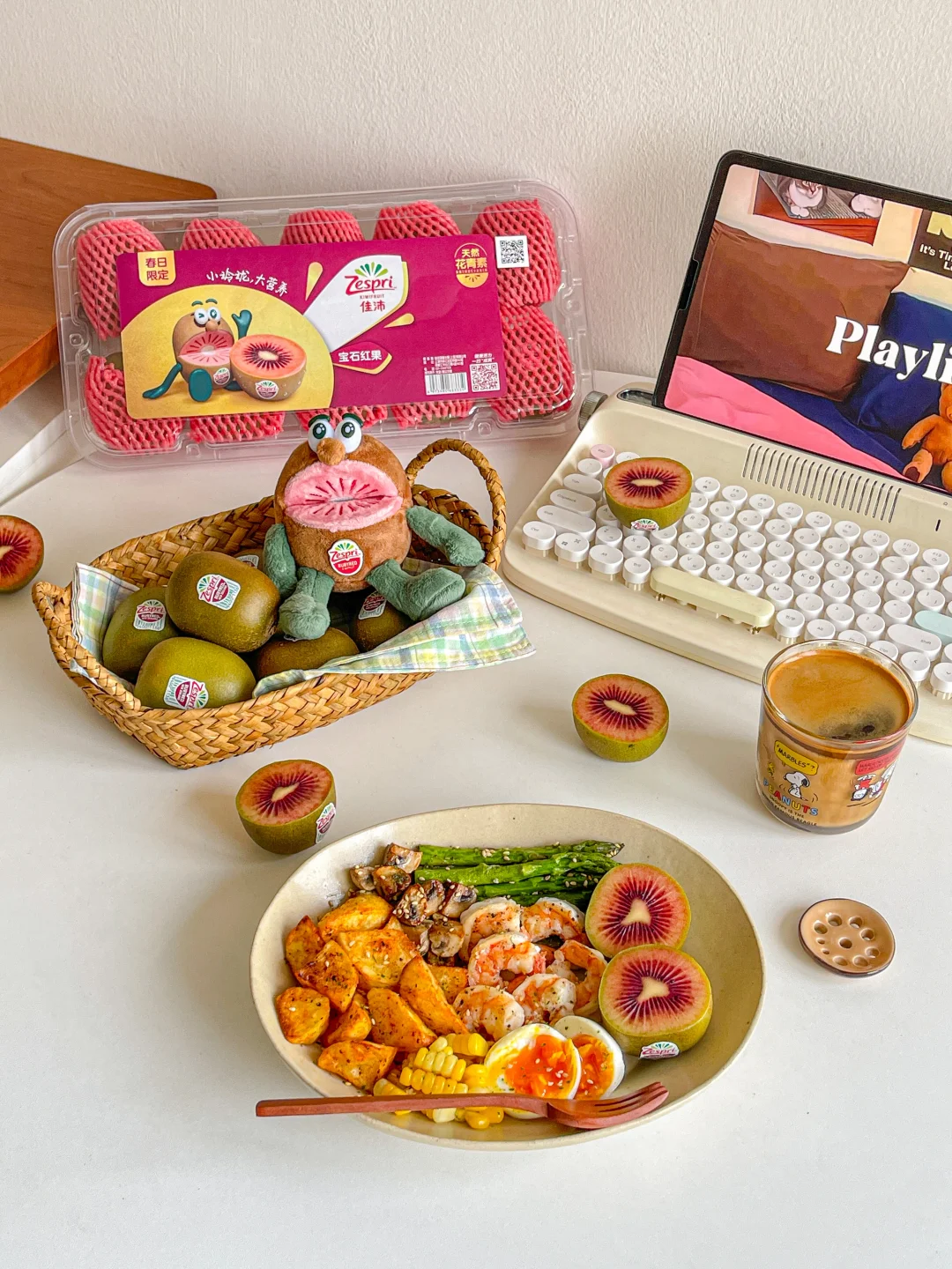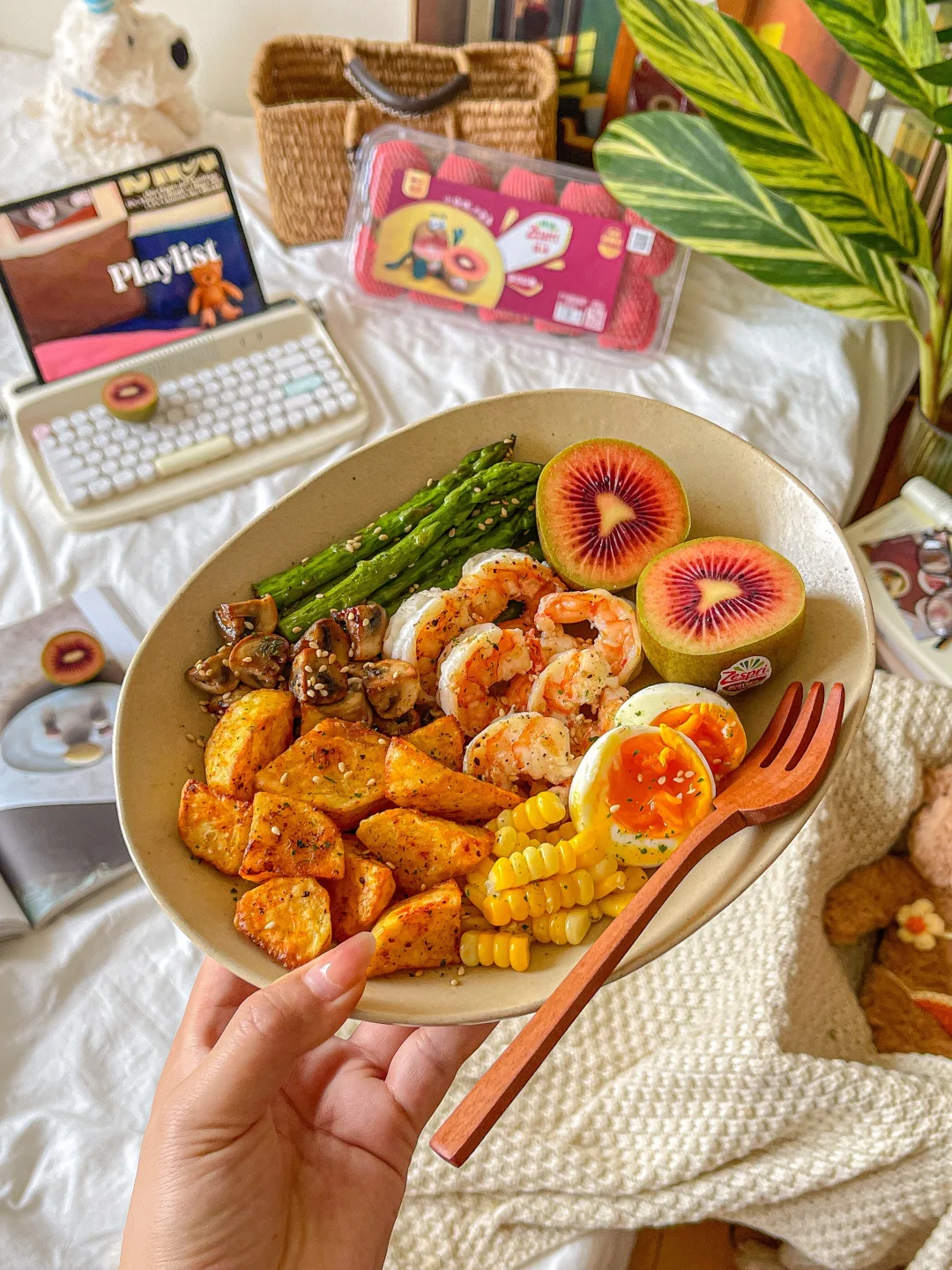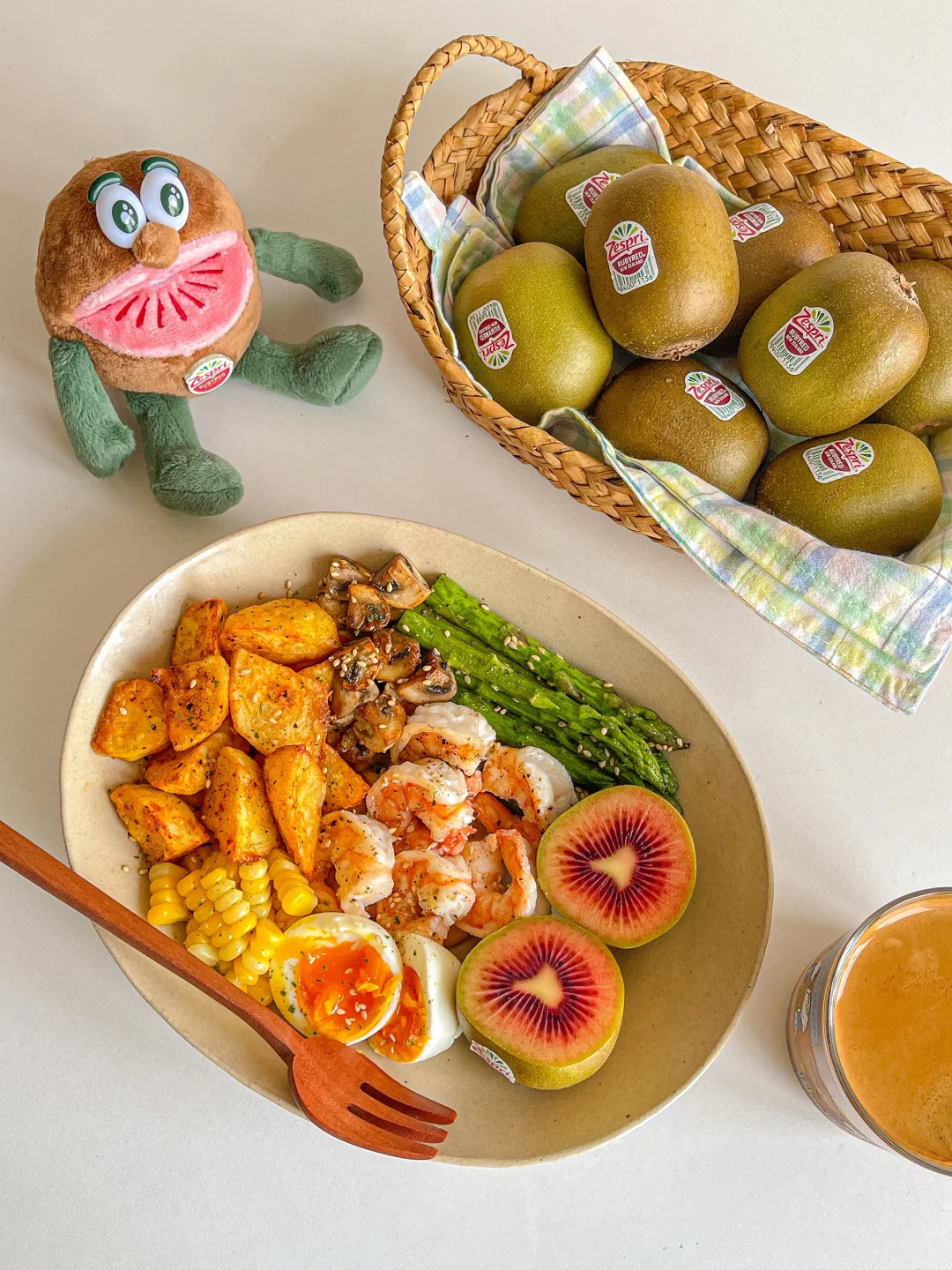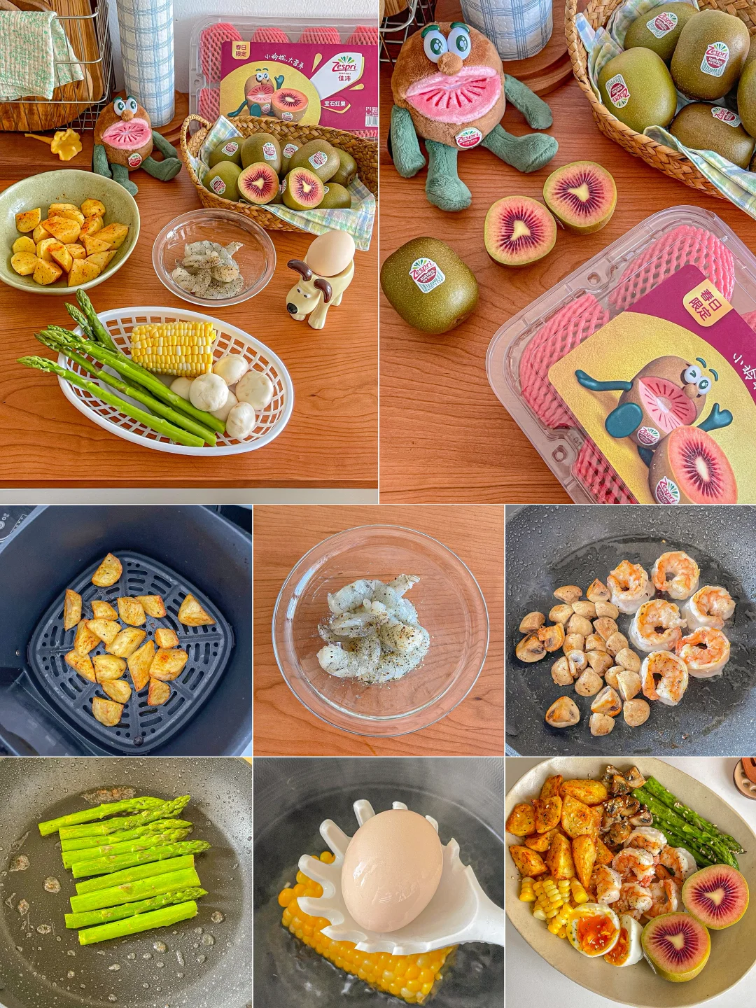 佳沛宝石红奇异果➕玉米➕芦笋➕口蘑➕虾仁➕土豆