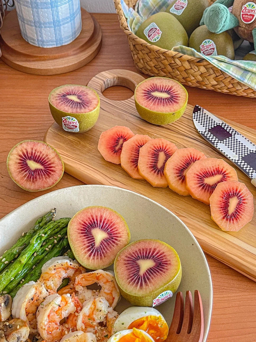 好喜欢今天的沙拉碗啊!平平无奇的沙拉拼盘加了这颗春日限定的佳沛宝石红奇异果一口惊艳住✨