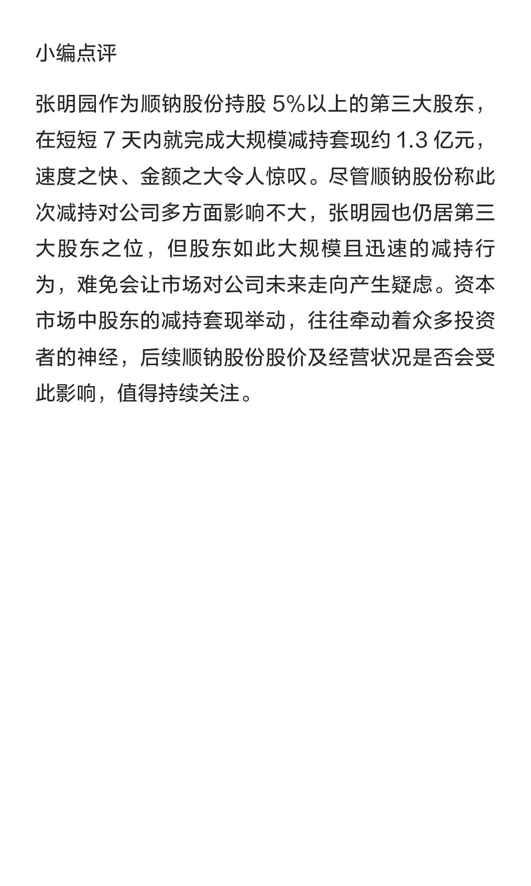 佛山一上市公司第三大股东7天减持套现1.3亿