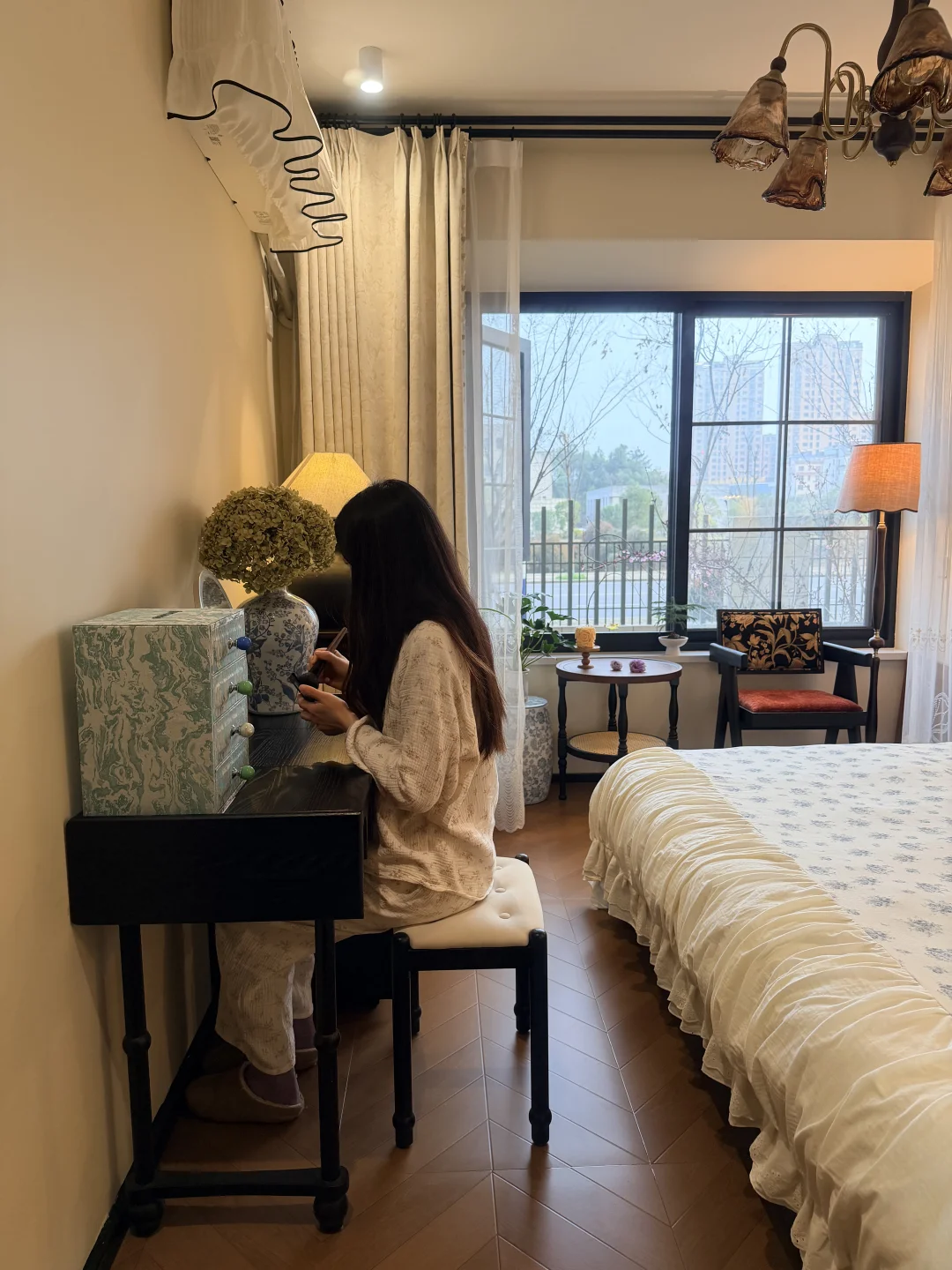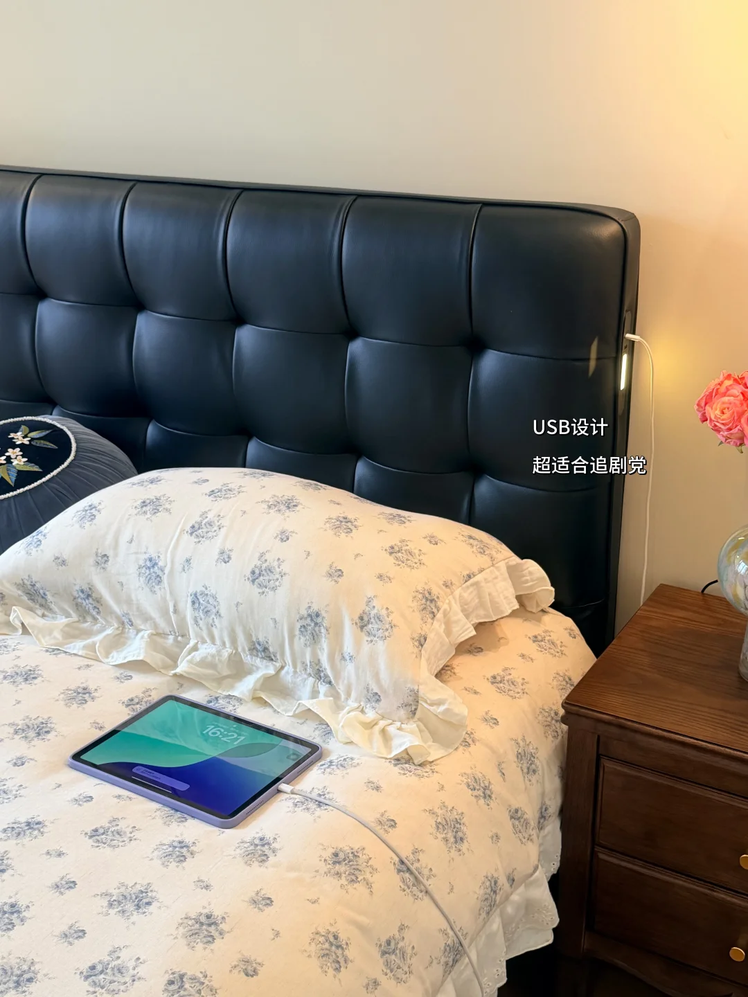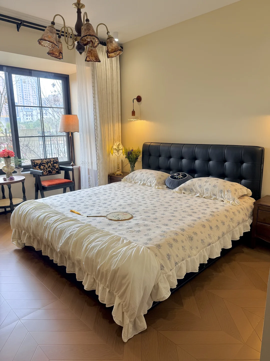 ~ 哈喽姐妹们 欢迎云参观我在一楼的复古小卧室呀 卧室空间不大,但是也想整的舒服又漂亮 这可花了我不少的心思呢~ 因为想要在软装上有更多的发挥空间 所以硬装简简单单 没有吊顶也没有贴石膏线 双层的复古窗帘为小卧室的温馨打下了基础的格调 窗户是我喜欢的大格子窗 透气采光都很好 安排了一组桌椅,整个空间更加灵动 卧室里的每一盏灯都点缀的恰到好处 让我的小房间变得更加浪漫有氛围 卧室空间有限 没有打衣柜而是在床尾放了斗柜梳妆台 还有我精细挑选的佐尔适华夫格储物床 它外表看起来高级又大气 和我的复古小卧室也很搭 头层黑牛皮的软靠包既舒服又好打理 床头还自带柔光小夜灯和USB接口 起夜也不怕摸黑,玩手机充电也不用到处找插座了 简直是不要太方便~ 齐边设计也很懂小户型 悄悄省出超多卧室空间 小小的卧室也变得更加宽敞 床底和床侧都拥有收纳功能 一些换季不需要的物品都可以放在床底框架箱子内 抓住提拉带子一拉,气压杆就可以托起 女生拿取也会很方便 侧边就是更方便拿取的小抽屉 足足有三个,除了放我经常更换的四件套 纸巾也可以随时拿取,再也不用摆放在外面看着乱七八糟的啦 加密的排骨架肉眼可见的扎实,承托力在线 这么一款美貌又实用的佐尔适华夫格储物床 简直是为我量身定制 对于没有在卧室打柜子的我实在是太刚需啦! 卧室虽小,却也在我的不断完善中变的更加契合我的心意 睡在这里的每一天都感觉生活真的太幸福啦~ 卧室装修佐尔适华夫格储物床佐尔适储物床卧室床推荐真皮床14平小卧室小户型卧室复古卧室卧室收纳梦中情卧卧室好物