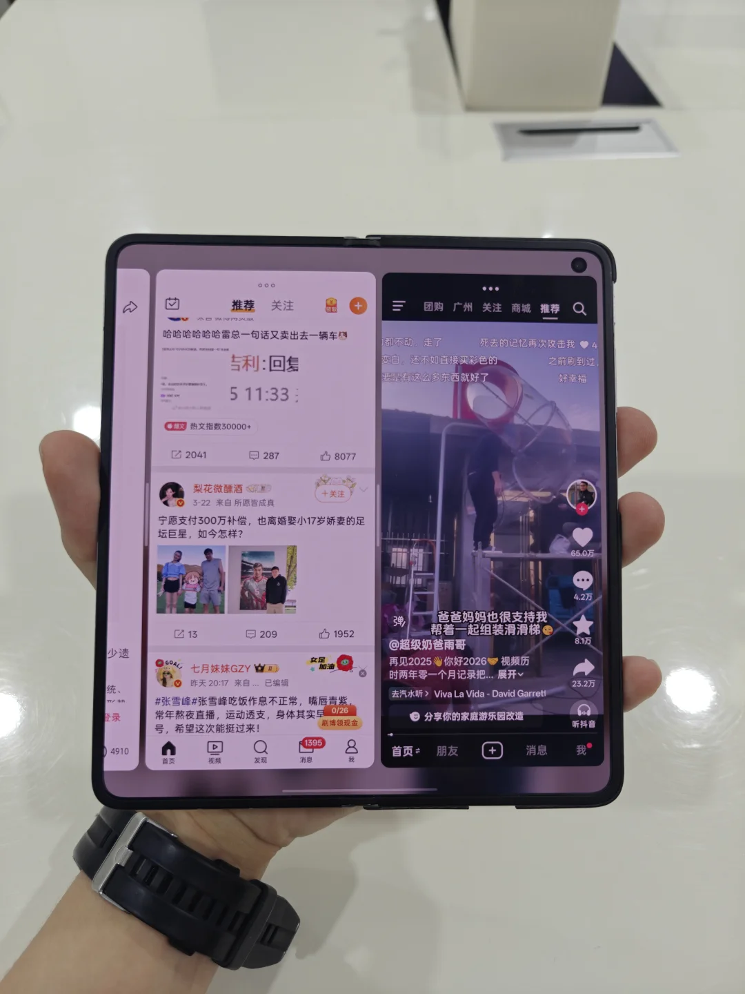 Find N6开售那一天我就入手了,很喜欢这一次送的手机壳,凯夫拉的,很有质感,旗舰手机就得用这种壳,其他厂商学学吧,这次的镜头设计比较简单了,居中大圆镜头,机身还是很轻薄,直角中框的质感不错。 - 内外屏幕的显示效果还可以,内屏感觉亮度挺高的,而且主打的无感折痕并不是个噱头,用了这么多天,还是几乎看不见折痕,每次手指摸过去没有那种沟沟壑壑的感觉确实有点爽。 - 小窗和分屏的体验有升级,叫那个什么「全景自由屏」,小窗和分屏间的切换很丝滑,还有一个比较好评的点,前置镜头挖孔在右上角,比在中间好hhh。 - 续航方面,我平时主要是聊天和看视频,一天亮屏六七个小时是可以的,和直板机差不多,符合6000电池的续航吧。 - 我看上网上挺多媒体对Find N6的评价很高,把折叠屏的折痕难题解决了,算是折叠屏领域的一大突破,后面发布的苹果折叠屏甚至用OPPO供应链,这一次国产确实走在前面啊。 -