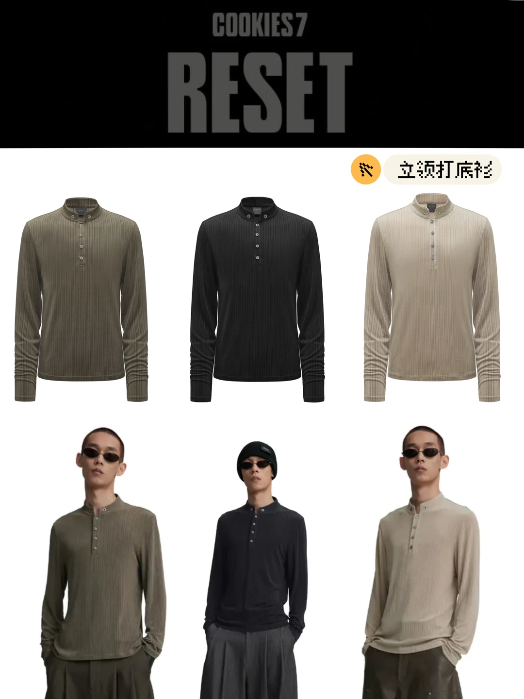 · 几何分割、罗纹拼接、亨利领等剪裁设计,强化街头利落感