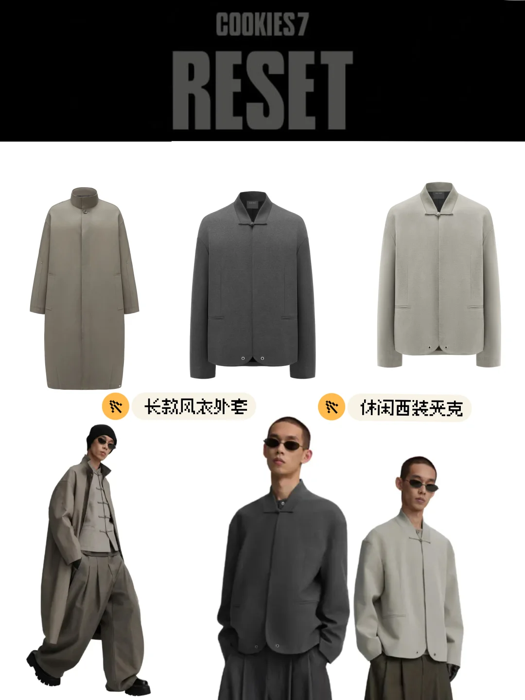 保留品牌一贯利落高级,注入东方立领、盘扣等传统细节,简约、街头、国风、高级感全都在线,每一套LOOK都有不一样的情绪与气场~