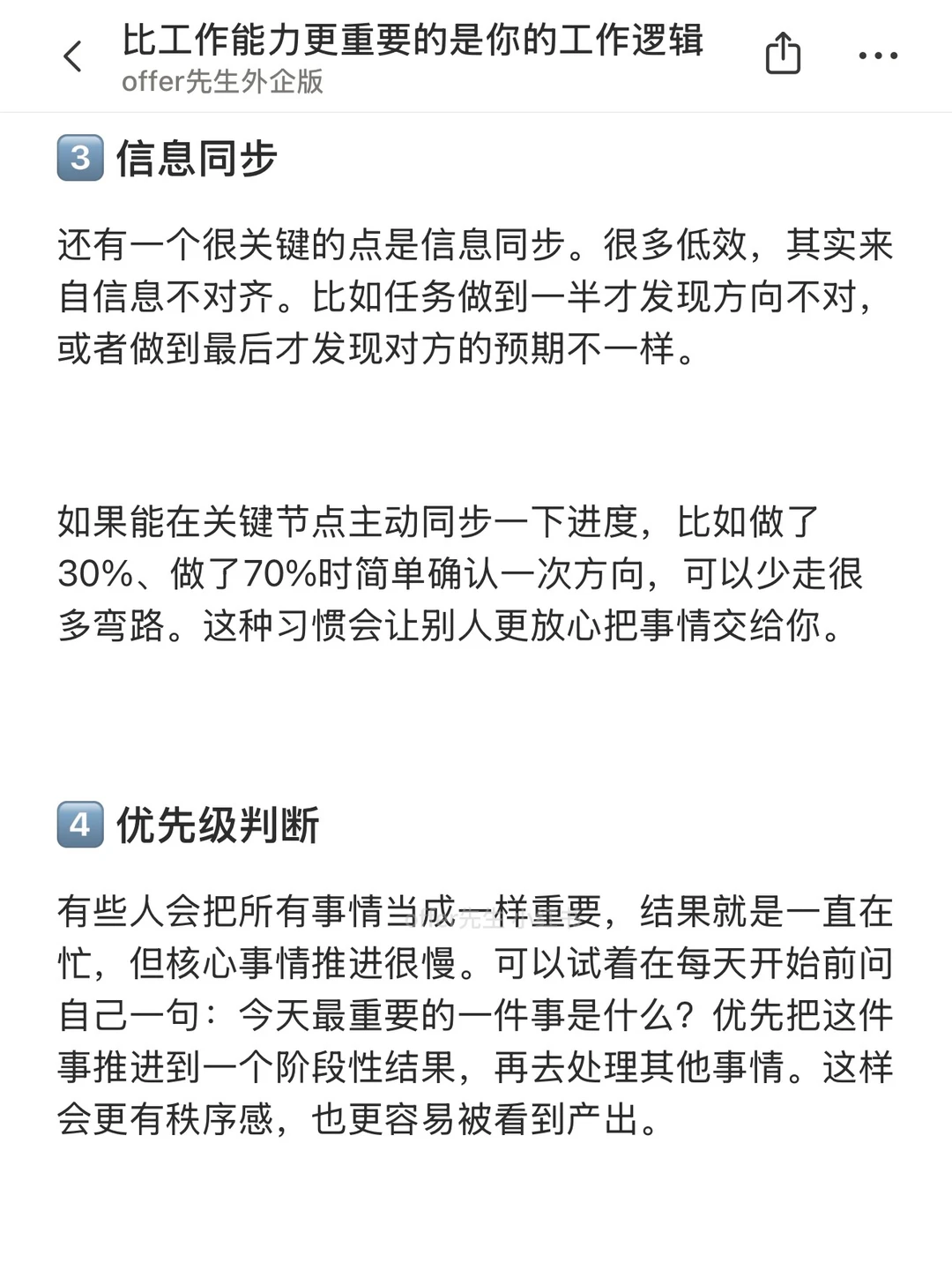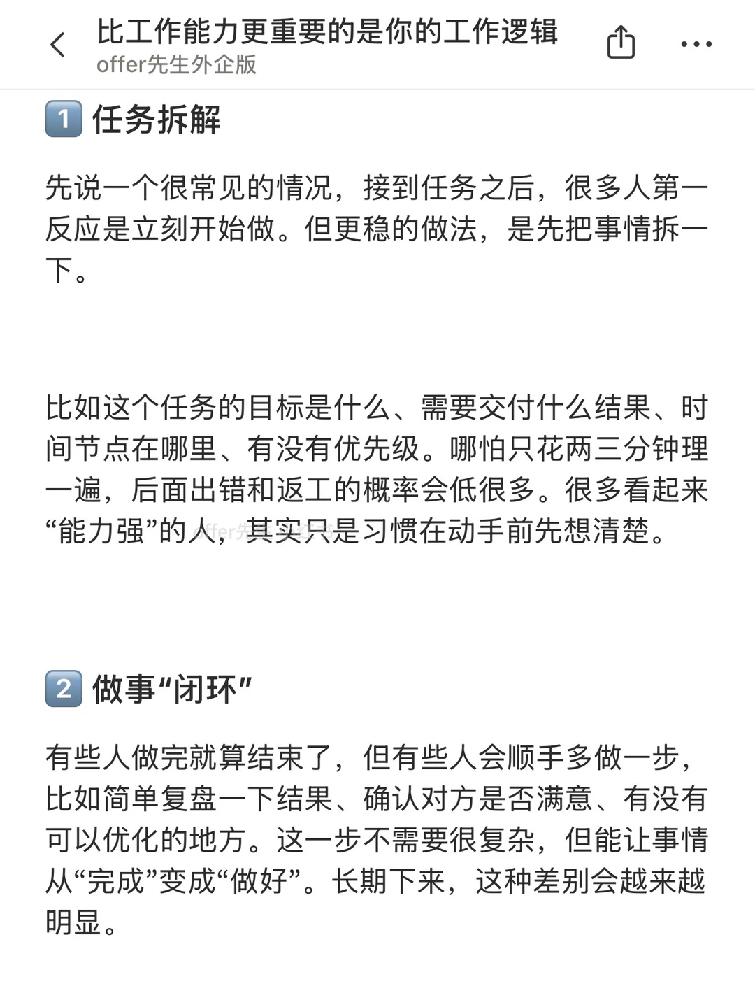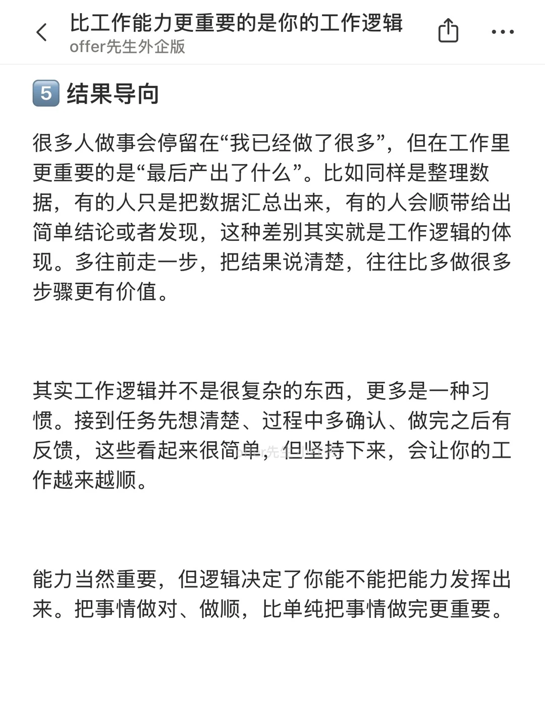 很多人刚上班的时候,会很在意“能力够不够”,比如会不会做数据、会不会写方案、会不会用工具。但工作一段时间后会发现,同样能力水平的人,结果差距其实挺大的 区别往往不在能力本身,而在工作逻辑。能力决定你能不能做事,逻辑决定你做事有没有效率、有没有结果。这篇就想分享几个很关键的工作逻辑 一个认真分享“找工作”干货的账号。真诚、有料、不说空话,只想用真实经历、具体方法,帮大家少走点弯路