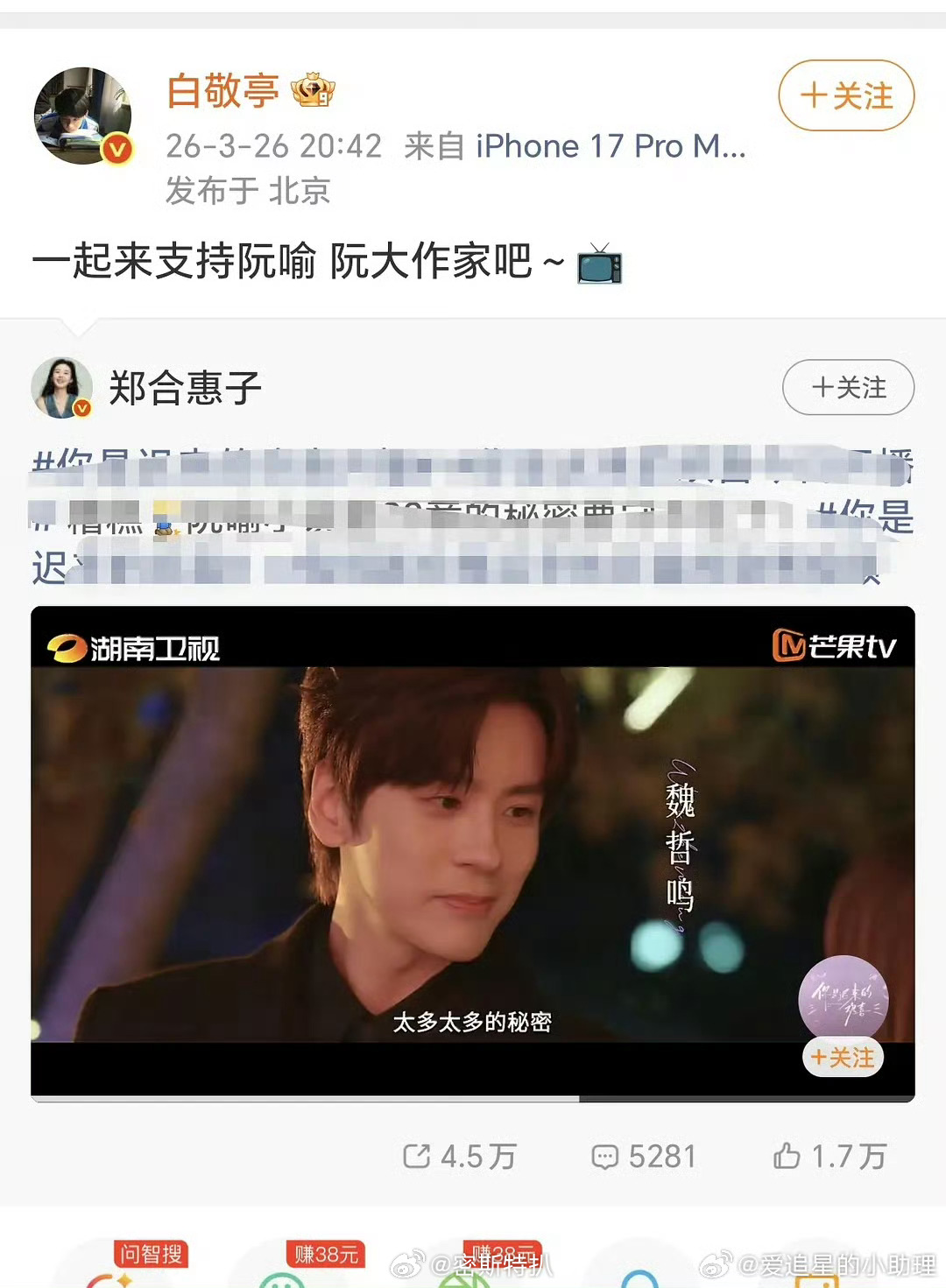 郑合惠子咋了为啥都说她背刺过白敬亭白敬亭郑合惠子互动