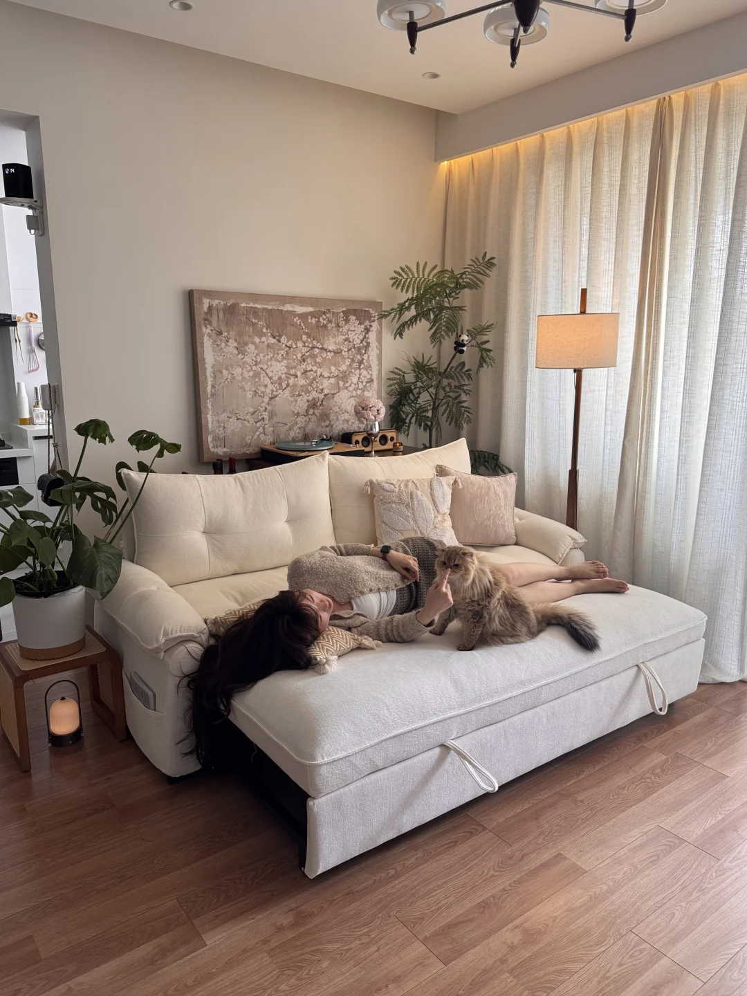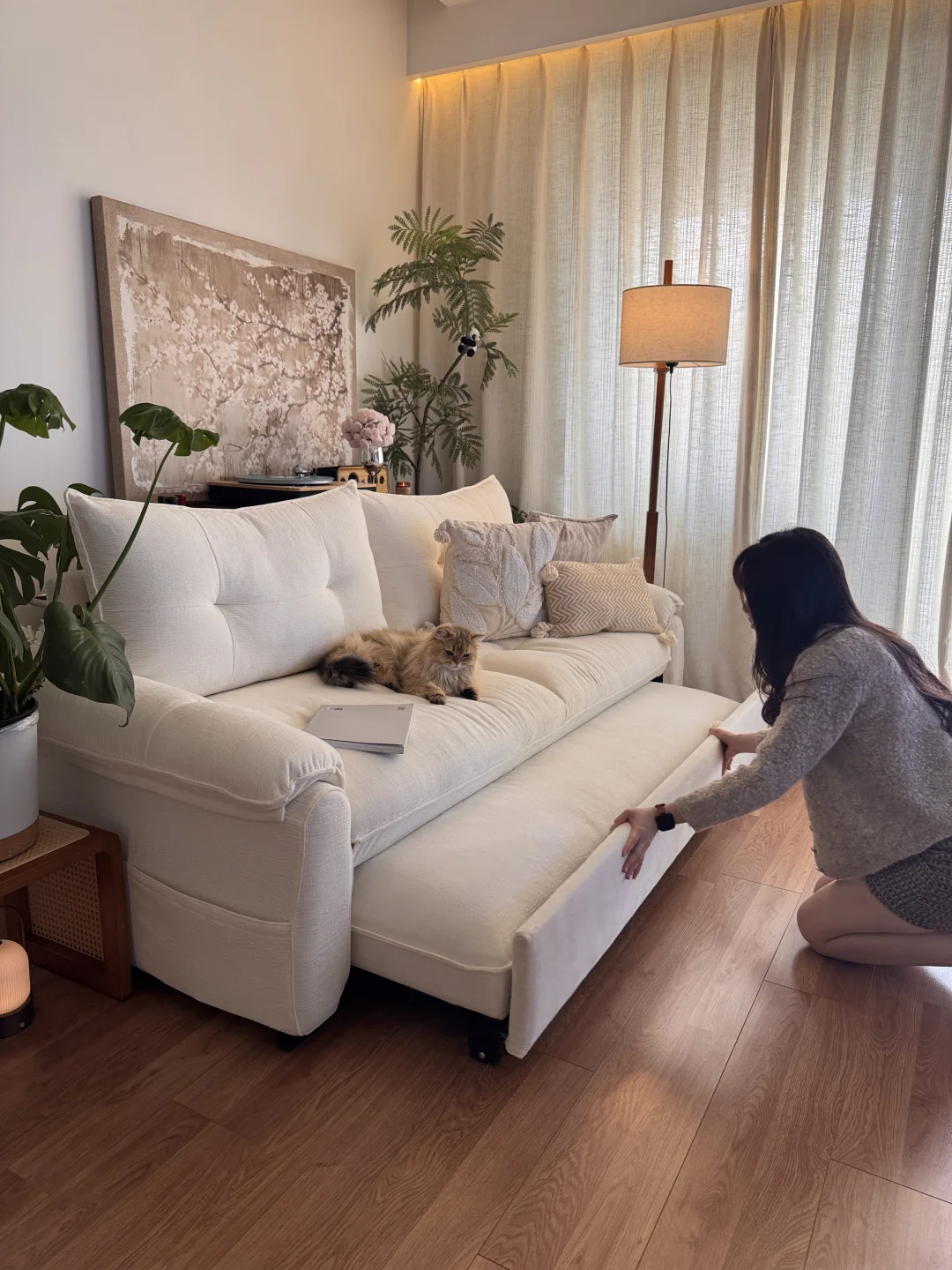 沄巢沙发床佐尔适佐尔适沄巢沙发床松弛感家居客厅装修沙发装修客厅软装中古风养猫家庭客厅改造白色沙发佐尔适沙发