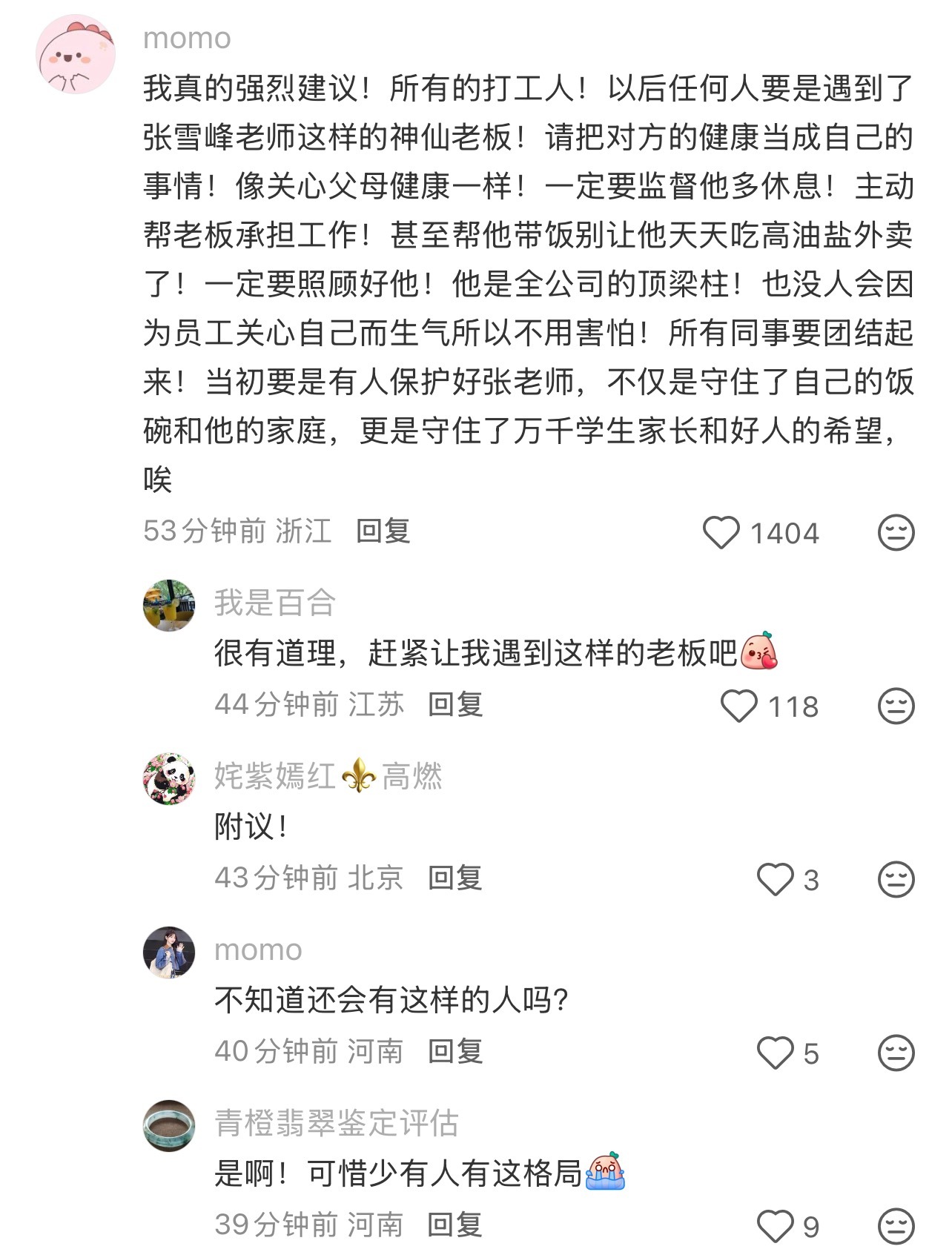 上次老板说是去体检了,我就很紧张,一直问结果,结果还好,就是喝酒一点小毛病。老板