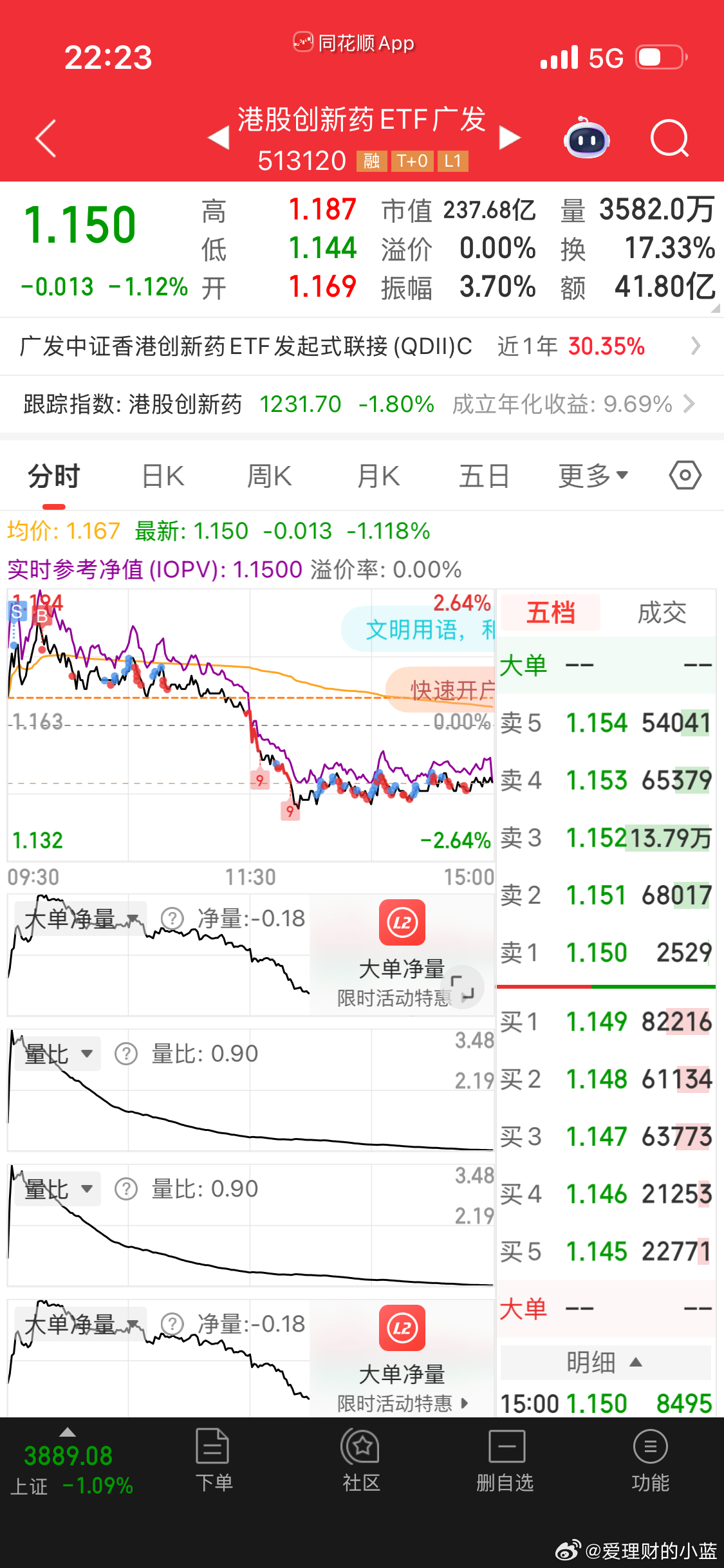 我今天场内贡献了近500万的成交额。来来回回搓了那么多次少亏0.63已经很开心了。