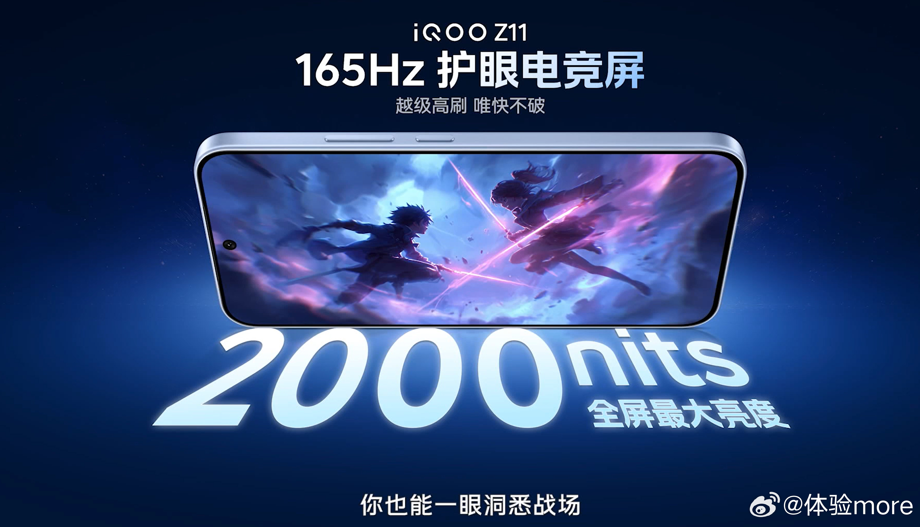 iQOO Z11是iQOO史上第一个165Hz超高刷,2000nits全屏最大亮度(1000nits手动最大亮度),支持全亮度类DC调光。iQOO Z11