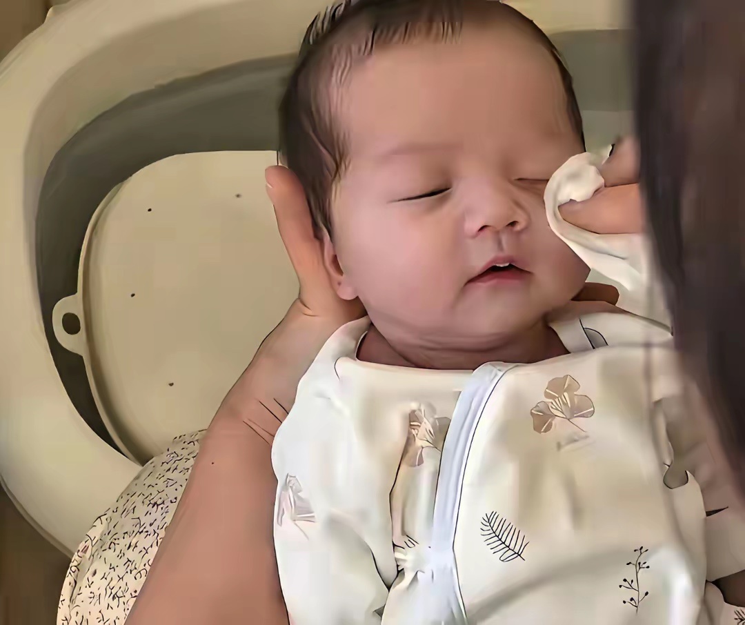 汪小菲和汪宝儿合拍满月父子照。第三次做爸爸的汪小菲似乎更幸福了,真应了“人老喜
