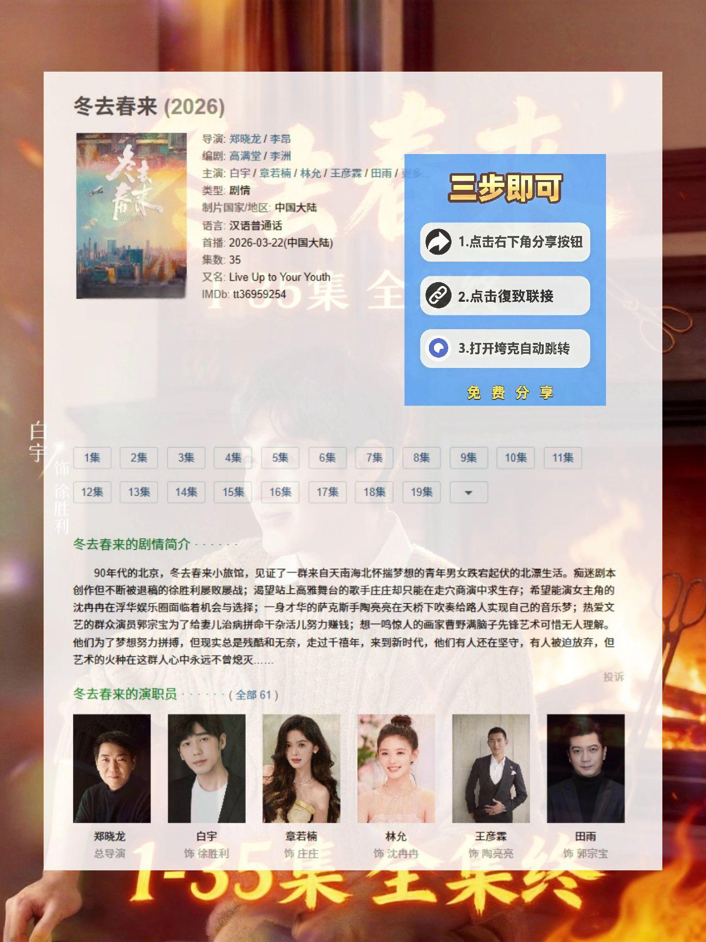 伏脂晑稳乕爨癵洞座《冬去春来》1-32集说实话,很久没看到这么走心的剧了,真心推荐冬去春来 冬去春来开播 章若楠 白宇 徐胜利 冬去春来追剧日历 冬去春来好看吗冬去春来在哪看 冬去春来播完了吗 冬去春来在哪看完结冬去春来在哪看大结局 冬去春来完结了冬去春来全集终 冬去春来什么时候结局冬去春来大结局怎么样