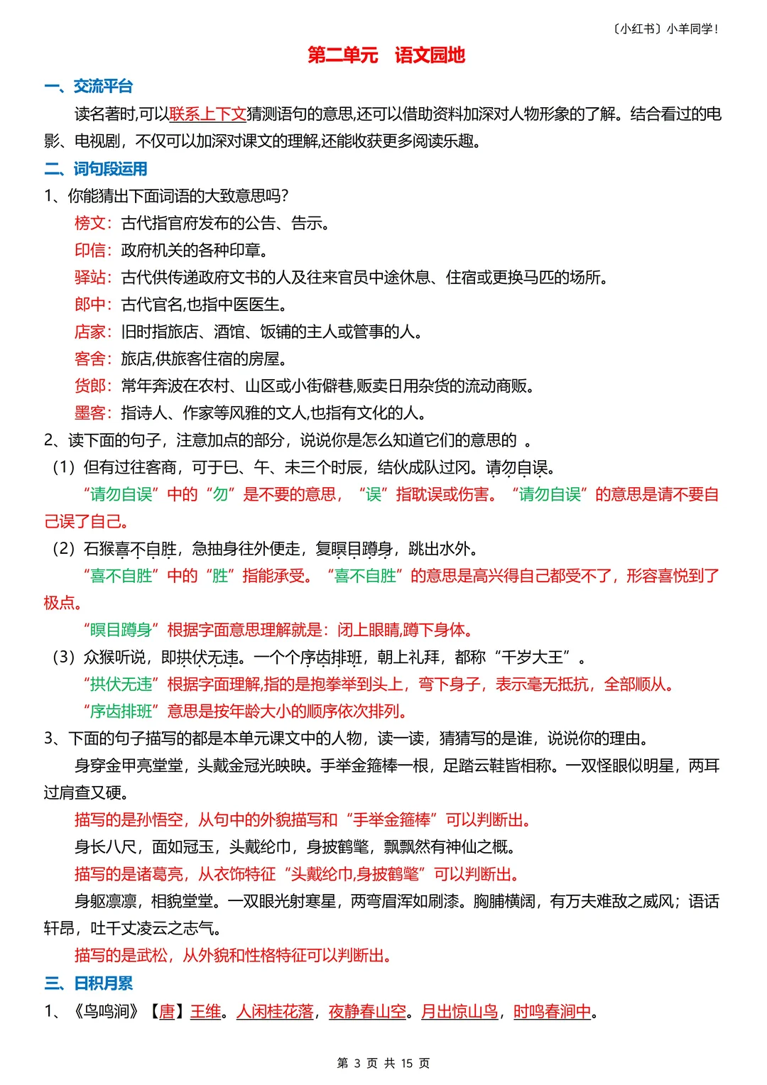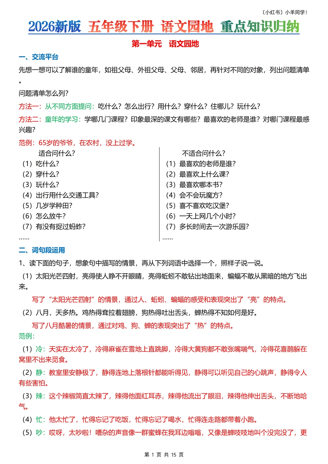 宝子们!五年级下册语文园地的知识点,考试里超超超关键,直接关系到提分,赶紧码住!💯 一共15页。需要注意的是,五下的第三单元是活动单元,是没有语文园地的。 这些知识点,狠狠记住,考试提分稳稳的~ 📚 🛍️评论区店铺获取。 ⚠️拍过五下每课知识点的宝子就不要拍这份了哈,每课知识点包含这份语文园地知识点的。