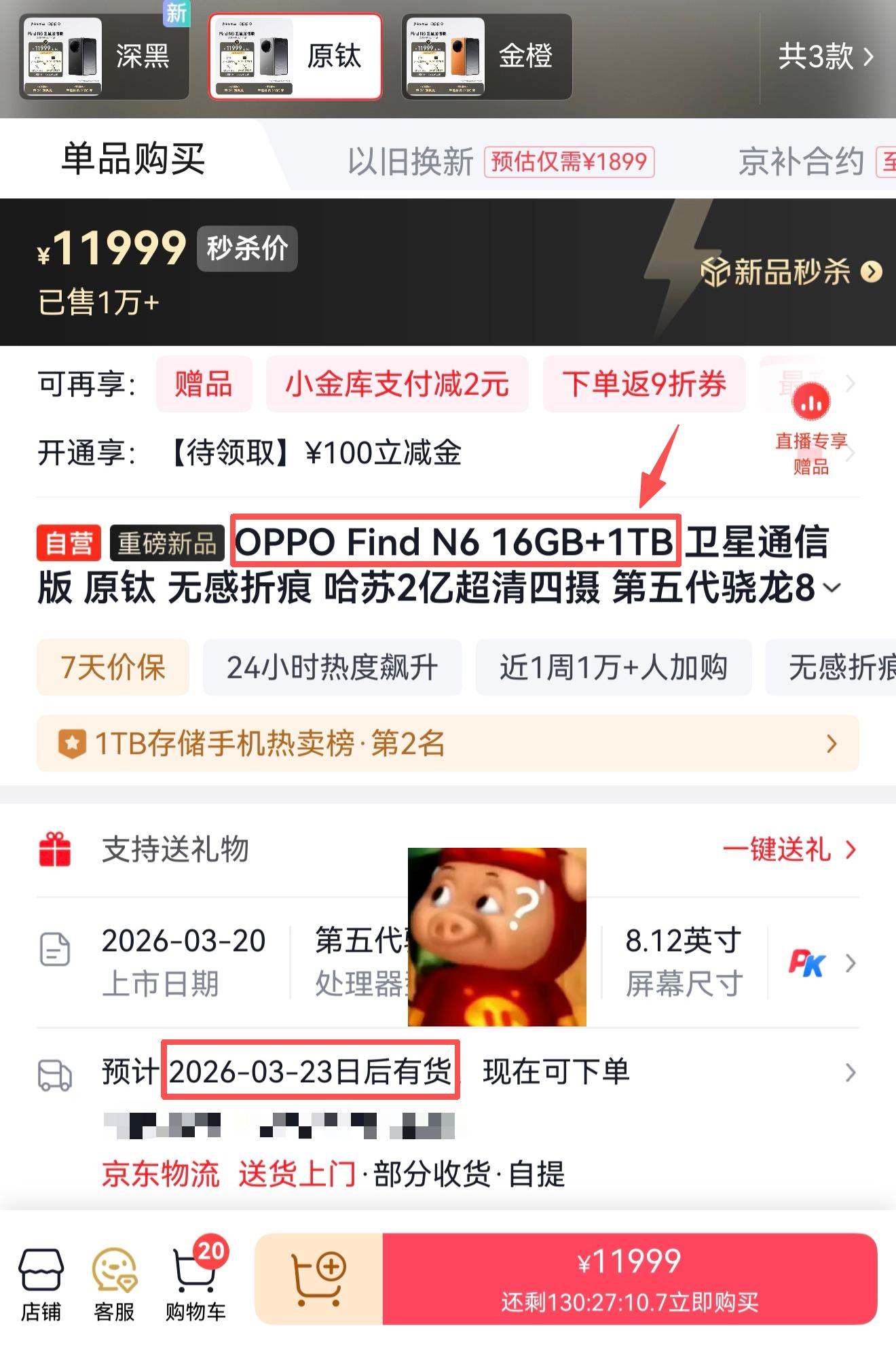 难怪我到线上的两个大平台看了下,OPPO Find N6的1TB版本要么显示“缺货”状态,要么就得等到3月23号才有现货,跟数码闲聊站说的1TB版本预售占比近40%呼应上了,也是创下历史新高~看来冲Find N6首发的高端用户都选择了 “一步到位”,而其实仔细想想的话反而是1TB版本zui值!