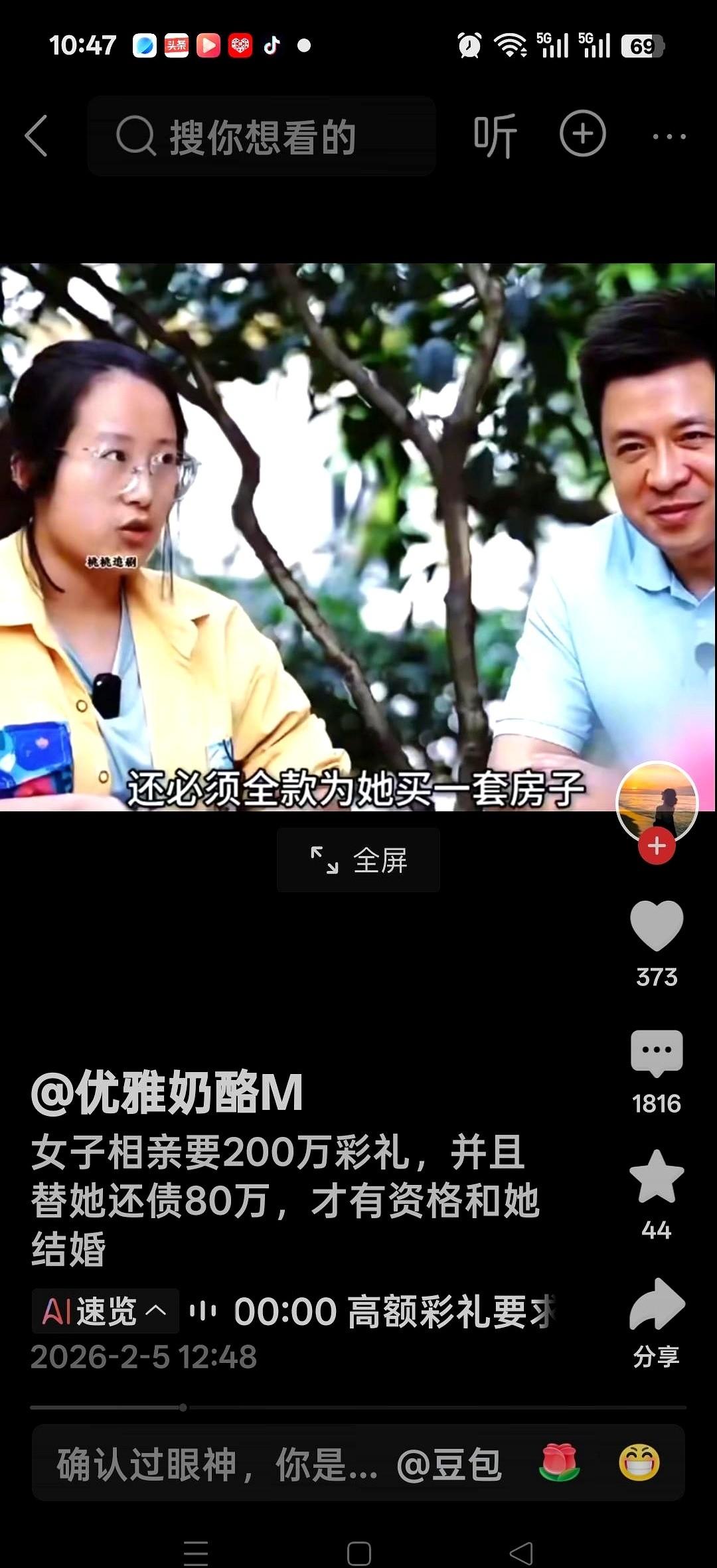 一场相亲,女方没聊别的,直接把一张“资格审查表”拍在了桌上。 第一项,彩礼200万,现金。 第二项,全款房一套,必须是她的名字。 男方刚端起的水杯,就那么悬在半空。 她看都没看他,补了第三项,也是最关键的一项:“对了,我身上还有80万的外债,你先替我还了,这才是入门资格。” 说完,她慢悠悠地搅动着眼前的咖啡,那姿态,仿佛不是在谈婚论嫁,而是在宣布一个项目的最低中标价。空气里,只有勺子碰到瓷杯的清脆声响。 她把结婚,活生生变成了一场精准的资产重组。 先用男方的钱,剥离自己的不良负债。再用男方的钱,完成对优质资产(房子)的收购。最后,用一纸婚约,锁死一个长期饭票。 这哪是找老公,这简直是在为自己的公司找一个天使投资人,还得是那种不求回报、只管砸钱的。 说白了,这不是结婚,这是上市敲钟,门票280万起,外加一套不动产。