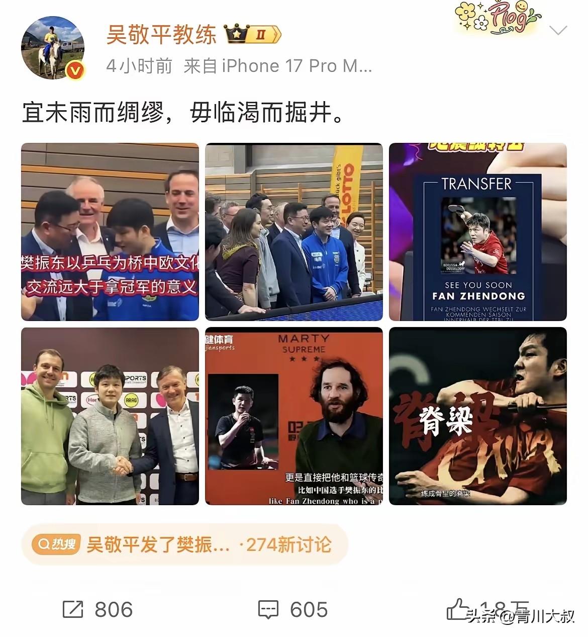 樊振东去德甲打球的意义是什么?吴敬平发文说的很明白! 以乒乓球为桥, 促进中欧文化交流, 意义远大于拿个冠军! 看来不是一个人看到了东哥的价值, 央视拿到德甲转播权, 会继续扩大东哥的影响力和价值! 杜塞尔多夫是一个商业城市, 特别是会展经济发达, 和法兰克福一个水平, 所以这个文化交流, 也会转化为经济交流! 我认为, 这才是东哥打德甲的最大意义!