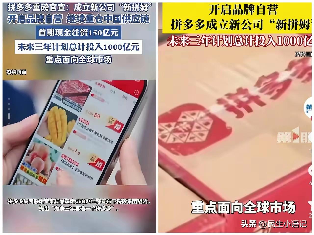 谁能想到啊,3月25号晚上,拼多多一声不吭,直接搞了个大动作,估计全行业都没料到! 人家直接成立了一家全新的公司,名字叫新拼姆,二话不说扎进品牌自营的圈子里,完全换了一套玩法,从零开始重新干。 一直以来,大家对拼多多的印象,不就是卖低价好物、靠平台撮合商家和买家嘛,总觉得它就是个中间商,赚赚差价、引引流量。可这回,拼多多算是彻底摊牌了,直接不装了!再也不满足于当个中间牵线的,转身就自己下场,做起了深度自营,跟以前的模式彻底说拜拜。 首先他就是砸钱,拿百亿资金死磕供应链,从源头把商品品质牢牢抓在自己手里,再也不用靠别的商家,质量自己说了算; 然后还会动用国内国外两边的资源,把销售渠道和消费者彻底打通,不管是国内用户还是海外买家,都能覆盖到; 最终目的更远大,就是要面向全世界,孵化属于拼多多自己的品牌,让咱们的中国制造,真正走出国门,火遍全球。 以前大家总说拼多多只会卖便宜货,现在直接转型做自营、做品牌,现在整个自我升级,看来电商行业又要变天了,大家怎么看?