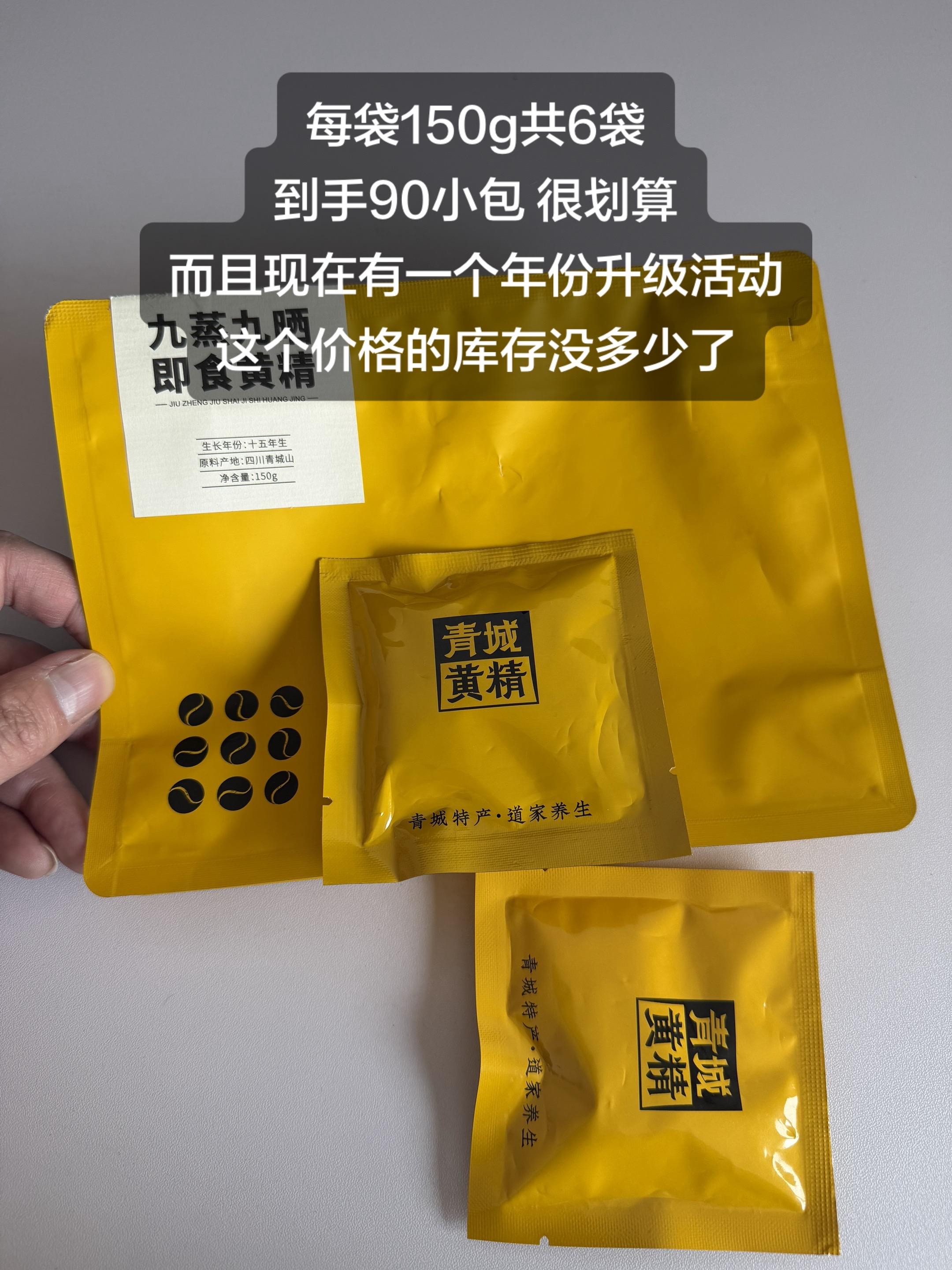 青城黄精到货了。每袋150g共6袋,到手90小包,很划算,现在有一个年份升级活动,这个价格的库存没多少了