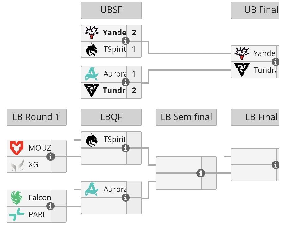 ESL伯明翰淘汰赛第一天赛果 Yandex 2:1 Spirit,两队都打的很好看来Yandex有冠军相 Tundra 2:1 Aurora,互相有来回,不用替补也很强,但还是石头人更强。 今日败者组 XG vs MOUZ,关键一战,看能不能下个赛季的直邀资格。 Falcons vs PARI
