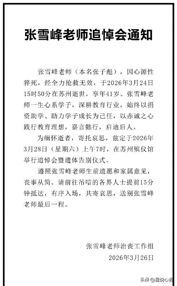 张雪峰老师追悼会本周六举行,一切从简。 好好的人突然走了,真的太猝不及防。 他帮了无数考研人避坑指路, 嘴硬心软的性子,刻在太多学子心里。 遵照遗愿丧事从简,这太像他的风格了。 想来他走的时候,最放不下的还是家人和女儿。 张老师,一路走好。 你的这份情,我们都记着。