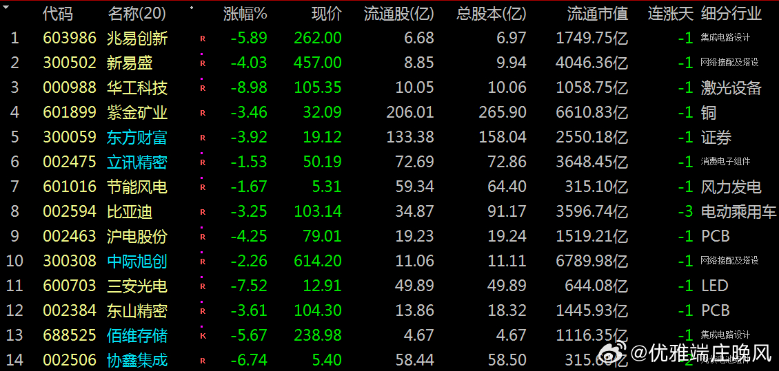 蛟龙携款:今日市场:个股普涨:意料之外:兆易创新、新易盛、紫金矿业等此前表现较强的个股却遭遇主力资金大幅净流出。这一现象:看似矛盾:实则反映了市场在结构性分化下的资金调仓与获利了结行为。