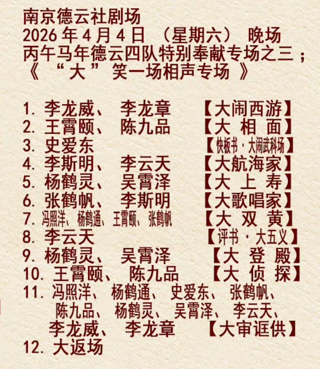 2026.04.04 德云四队 南京德云社“大”笑一场相声专场,德云四队依然给力