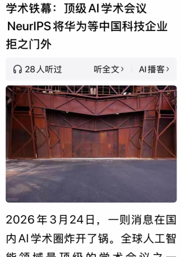 华为这些年在 AI 领域的投入和成果,全世界都看在眼里,顶会论文常年稳居全球前列,昇腾芯片、盘古大模型早已从实验室走向现实应用。如今被硬生生挡在门外,从来不是技术不够格,而是单纯被政治偏见拦路。所谓学术自由、开放共享,在单边制裁面前,显得既虚伪又可笑。