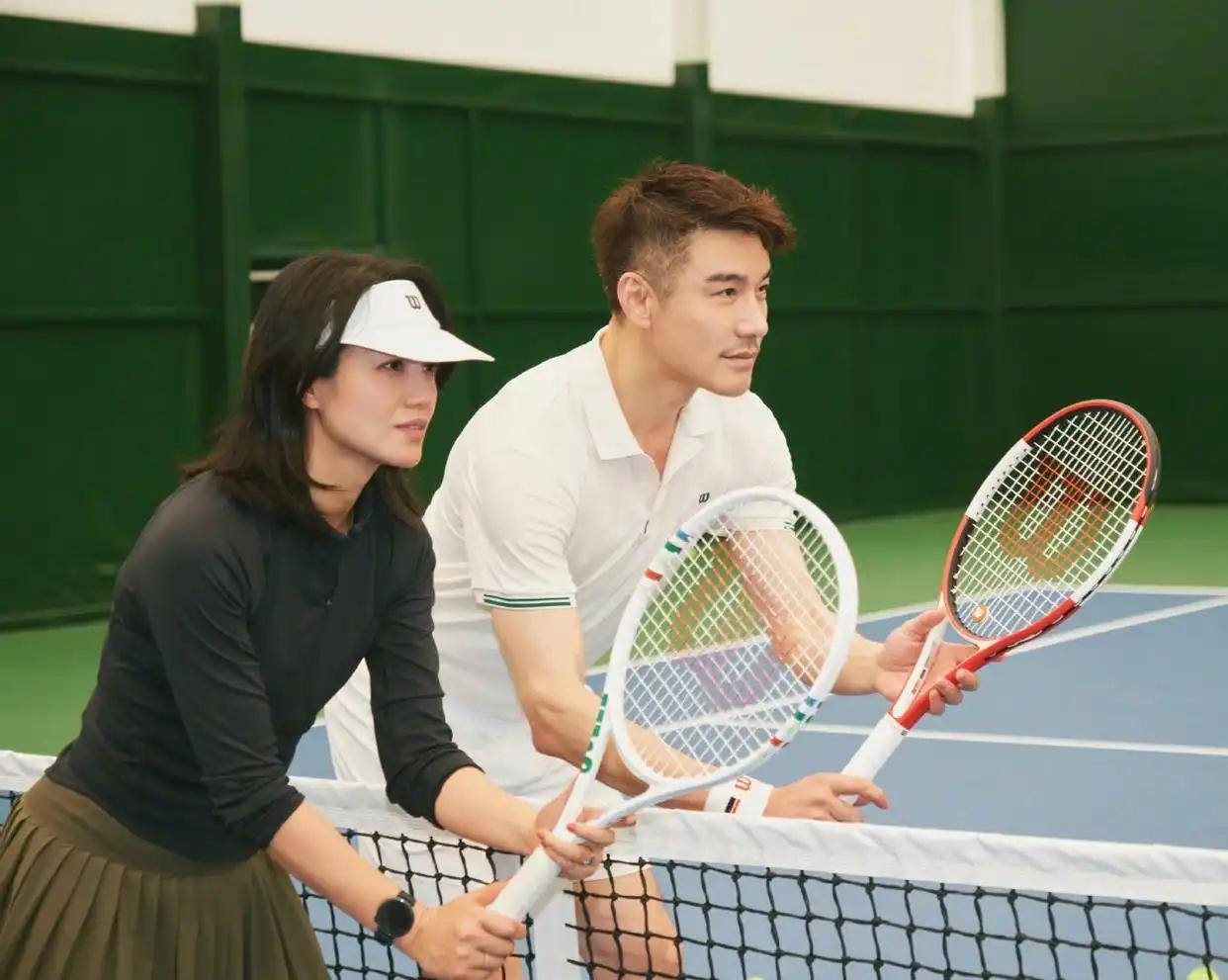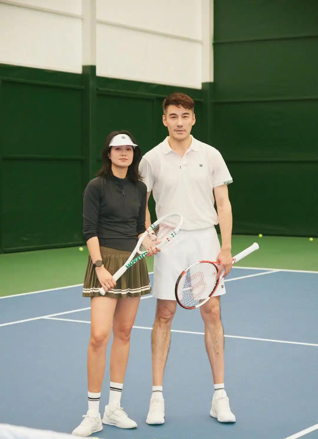 朱丹胡兵同框打网球,不知球技如何?但他们的运动穿搭棒棒的!