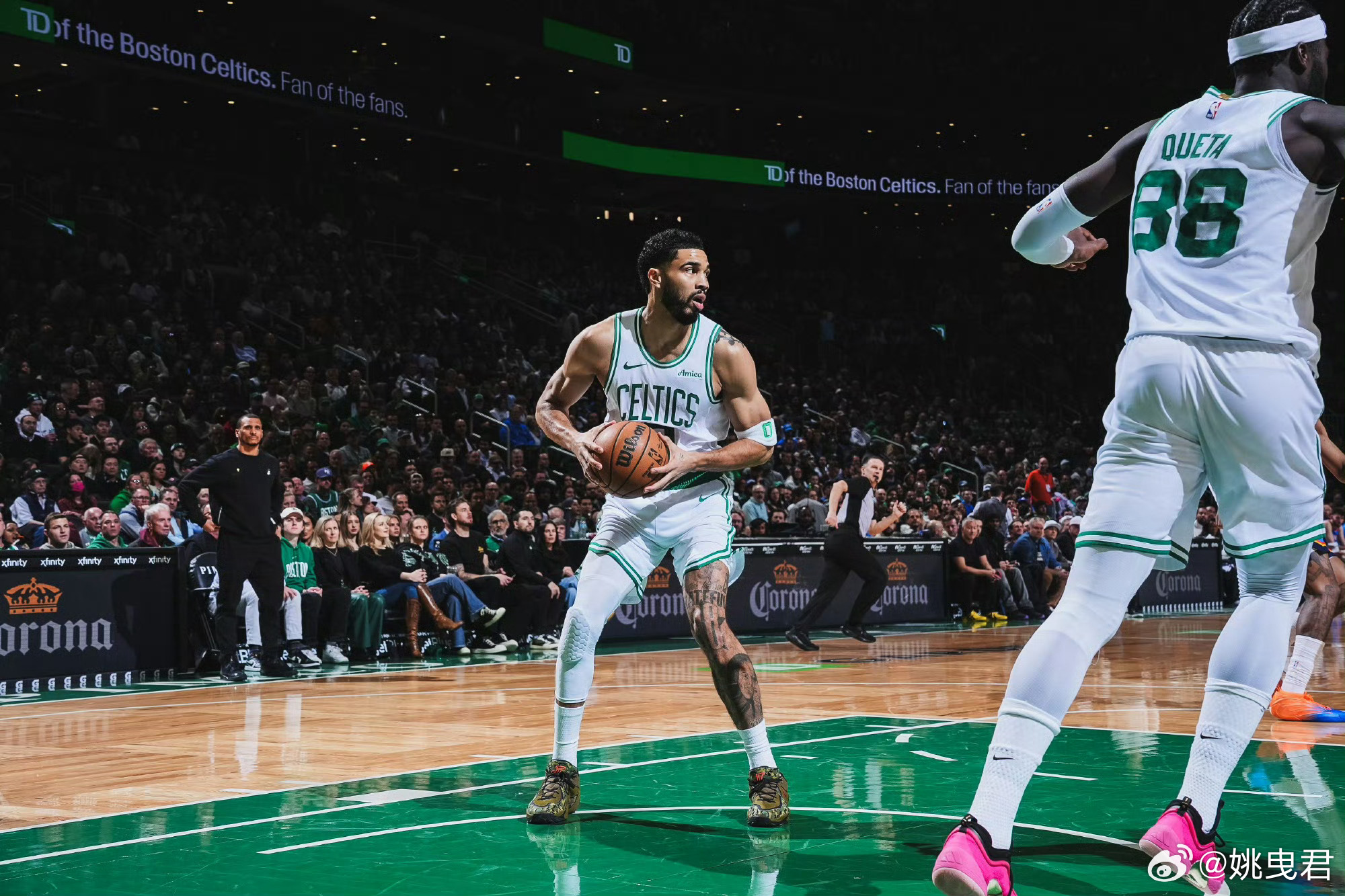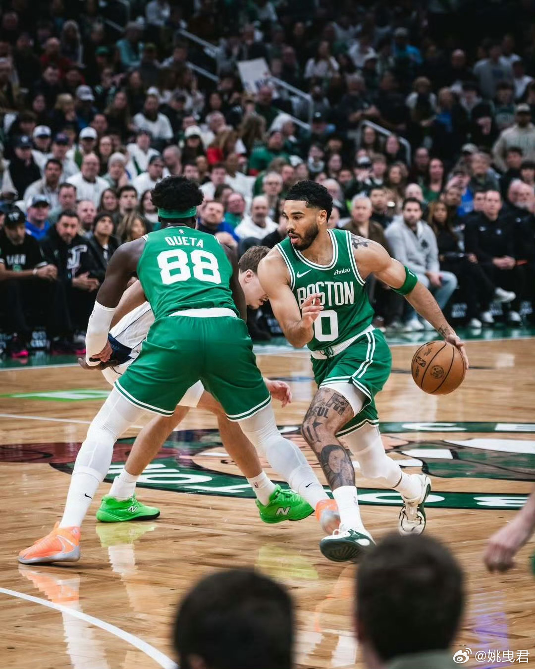 其实昨天的比赛中,相比看乐子的火箭对阵森林狼,更有质量的是凯尔特人与雷霆的对决。回归后的塔特姆尽管进攻效率偏低,但攻防两端给绿军带来的变化是清晰可见的。塔特姆会在手感不佳时专注于协防、后场篮板保护、快速推进组织上球,也给绿军增加了更多的错防可能性。例如面对雷霆空间更好的切特单塔阵容,塔特姆接管切特后,奎塔可以去错防多尔特、卡鲁索,昨天塔特姆也贡献了球队全场最高的12个篮板。这一点在季后赛中骑士队衔接段无论是阿伦还是莫布里的单塔,塔特姆的错防接管会对挡拆持球人很好的施压限制。