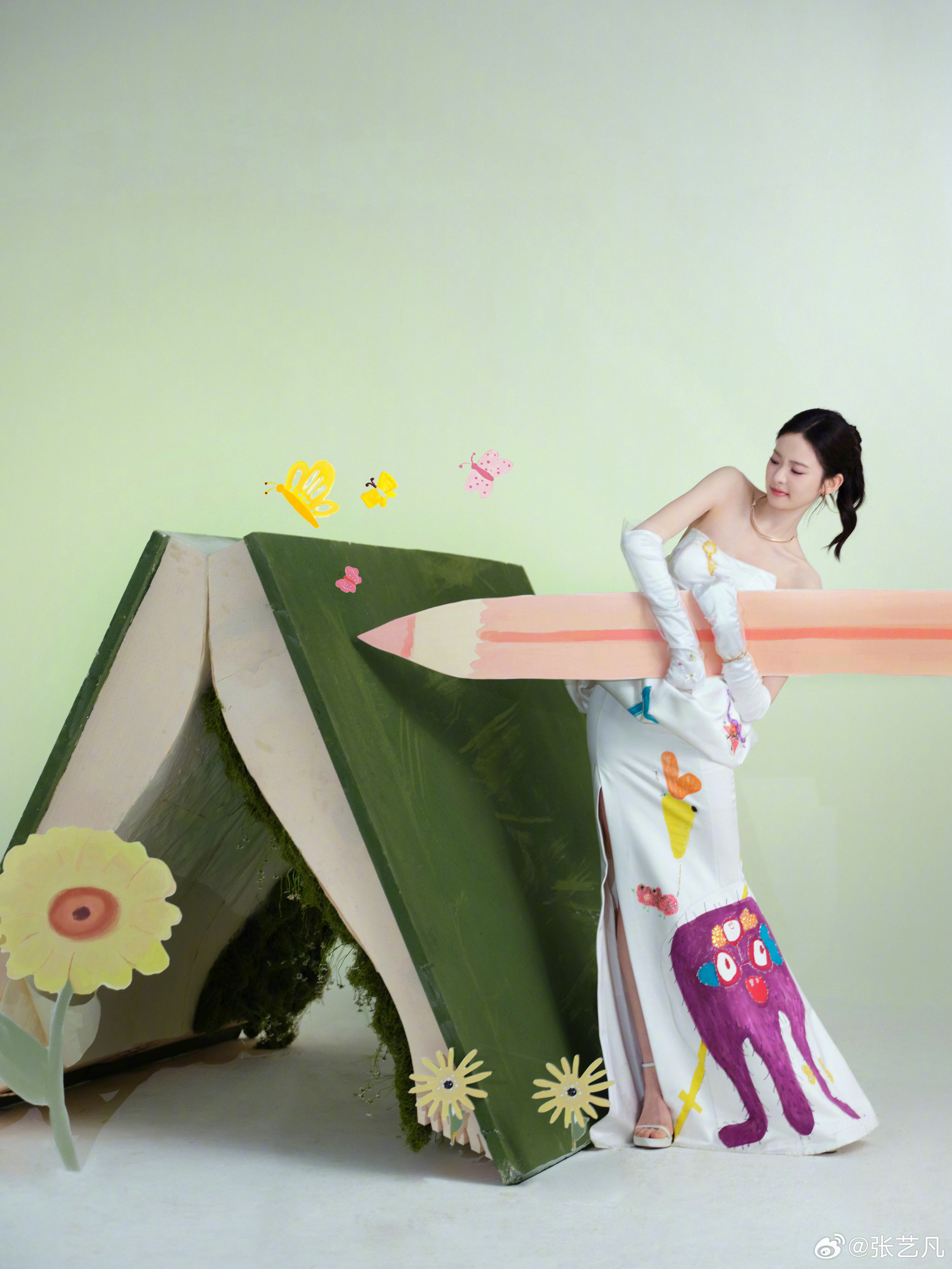 张艺凡把小朋友的画穿在了身上 张艺凡把小朋友的画穿在了身上!我滴妈,这也太可爱了吧,和春天好配~小朋友的画灵动又特别!张艺凡一上身,我宣布这件裙子有了最适合它的主人!出发图也好有创意,张艺凡从书中走来,好像童话书里走出来的公主,完全在逃公主来的~张艺凡从童话书里走出来的公主