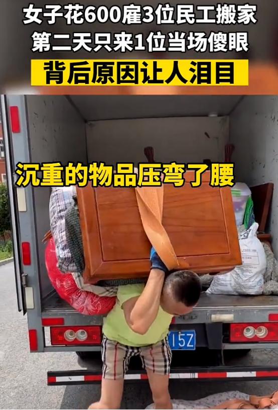 看哭了!因为搬家公司收费太高,女子花600 元雇 3 名农民工搬家,结果对方只来了一个人!女子气坏了,觉得农民工欺骗自己,可没想到农民工说:“请给我一次机会,我家里还有 3 个孩子等着交学费!”网友:这一刻明白了父亲的伟大! “你放心,我真的顶得住的。”他说这句话的时候,声音不大,甚至有点发虚,但语气却很稳。 女子站在门口,手还扶着门,没动。她盯着眼前这个人,心里那点不安反而更重了。因为她很清楚,这句话听起来像承诺,但更像是在硬撑。 女子今天搬家,她为了省钱,放弃了报价高得离谱的搬家公司,专门找了三个干体力活的农民工,谈好600块钱,一口价,人多干得快,她也能按计划当天搬完。可现在却只来了一个,没有解释,没有提前打招呼,就这么一个人站在门口,说“自己一个人也能干”。 她第一反应不是感动,而是觉得不靠谱。因为屋子里东西不少,冰箱、洗衣机、柜子,还有一堆打包好的箱子。她心里有数,这种活,一个人根本不现实。 更何况,她担心的不只是搬不完。万一把人累出问题,算谁的?时间耽误了怎么办?这些都是实实在在的麻烦。 但就在她准备直接赶人走的时候,这个大叔突然补了一句:“我家里还有三个孩子,等着交学费……” 这句话一出来,空气一下就变了。不是那种煽情的变,而是让人一下子不知道该怎么接话。就像有些话,说出来就不是用来“说服”的,而是让人没法再硬气下去。 女子愣住了,她不是没见过辛苦的人,也不是没听过困难的故事,但这种场景摆在眼前的时候,感觉完全不一样。你可以不信,但你很难不犹豫。 于是,女子心里的火,慢慢就降了下来。她没再说什么拒绝的话,而是换了个问法:“你一个人,真能搬?”对方点头,说可以慢慢来。事情就这么开始了。 其实,一开始她还是有点不放心,毕竟一个人搬家,效率摆在那里。可没想到,这个大叔是真的拼。 冰箱,他一个人硬是慢慢挪出来,找角度、垫布、滑着走;洗衣机,他咬着牙一点点抬;那些箱子,他一趟一趟地来回跑。没有抱怨,也没有偷懒。中间休息的时候,他就坐在楼道里喘气,喝口水,歇个几分钟,然后继续。 女子在一旁看着,心里开始有点不是滋味。她一开始担心的是被骗,是效率,是责任,可现在看到的,是一个人拼命想把事情做完的样子。 那种感觉,说不上来,就是你突然意识到,原来有些人不是在“接活”,是在“拼命”。 整个搬家过程虽然比预想中慢,但最后还是完成了。东西一件没落,磕碰也很少。女子看着,心里已经完全不是一开始的情绪了。所以她掏钱的时候,没有再纠结600块值不值,而是多给了400,一共给了1000。 大叔一开始还愣了一下,说不用这么多。女子只说了一句:“拿着吧,你值得这些钱。”那一刻,很多网友看完都说破防了,说这是“父亲的力量”。 但其实,整件事最扎心的地方,不是大叔一个人顶着压力全部干完,也不是女子多给了400块报酬,而是那句“请给我一次机会”。这句话背后,其实是一个人已经没有太多选择了。 只能说,这个世界不缺努力的人,缺的是在关键时刻,愿意给别人一次机会的人。 领航新锐收益节节高 信息来源: 新晋闻丨心酸!女子雇3人搬家却只来1人,得知真相泪目 文丨板烧鸡腿堡 编辑丨史叔