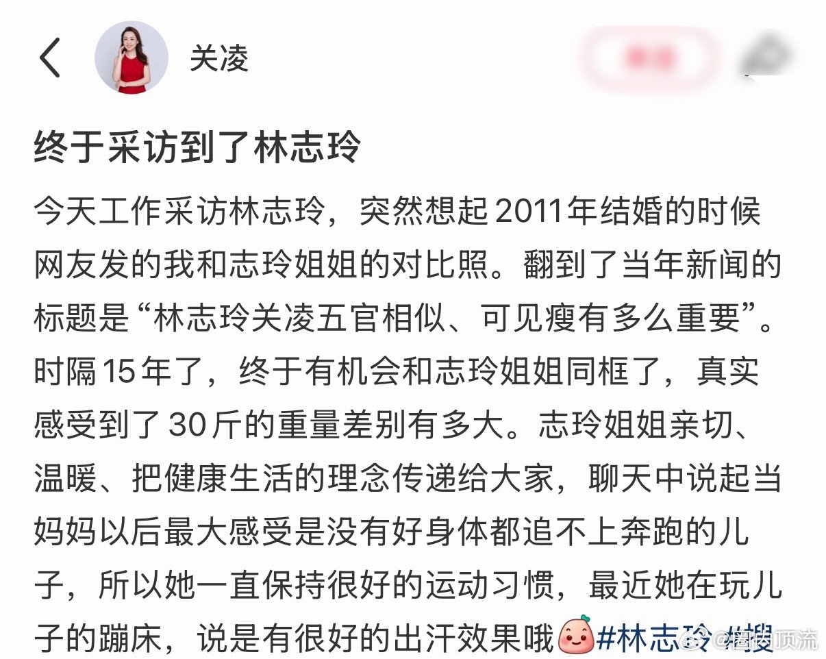 关凌提自己当年婚纱照撞脸林志玲关凌曾撞脸林志玲关凌与林志玲时隔15年梦幻同框!当年结婚照被网友说撞脸林志玲,老公还撞脸周润发,直接喜提“周润发搂着林志玲”名梗。关凌现场直言一直很喜欢志玲姐姐,这场跨时空联动也太有回忆杀了!