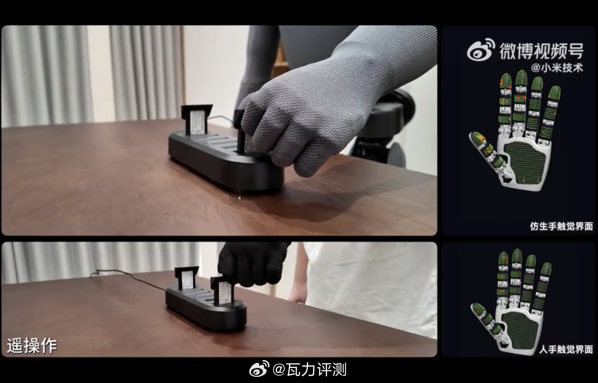 尤其是“小米灵巧手方案”,这个东西具备非常强的实际意义,不仅从技术层面摆脱了必须依赖视觉或三维模型数据的问题,而且还实现了精确操作次数和时间长的大幅提升。最重要的是,这种“全掌触觉手套”的形式,不仅机器可以当工具用,人戴上去用还能训练模型。理论上这样还可以极大的节省训练成本,甚至效率也要更高。