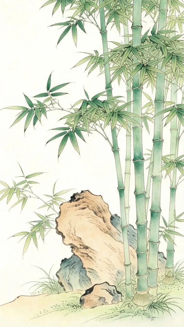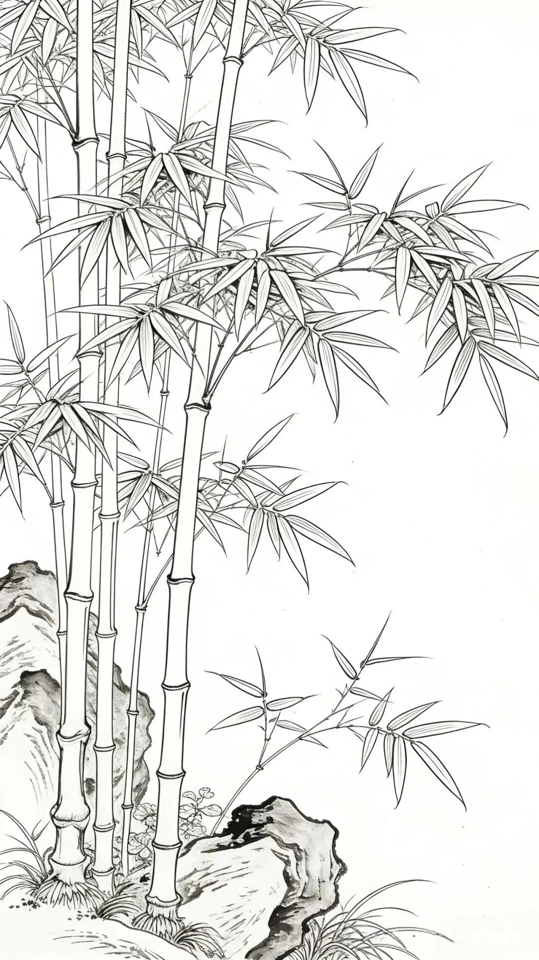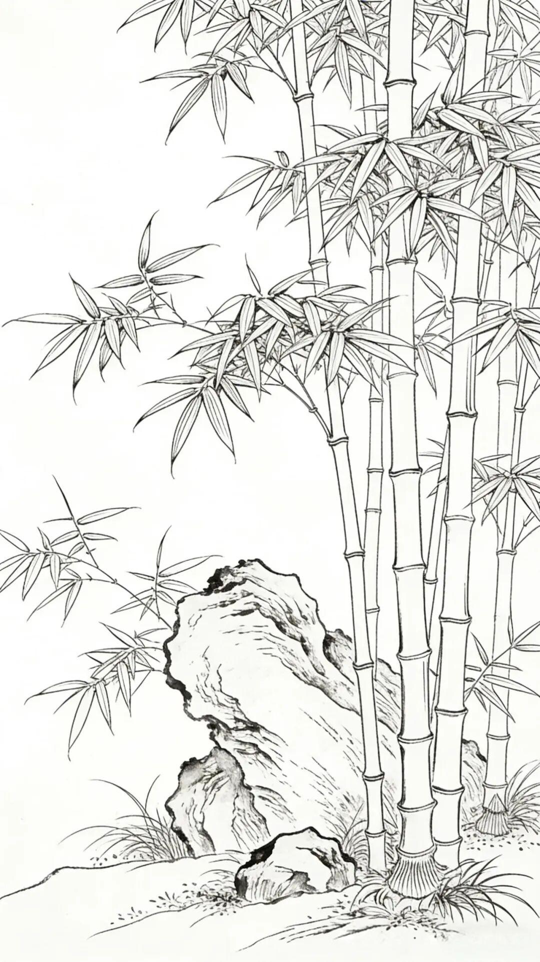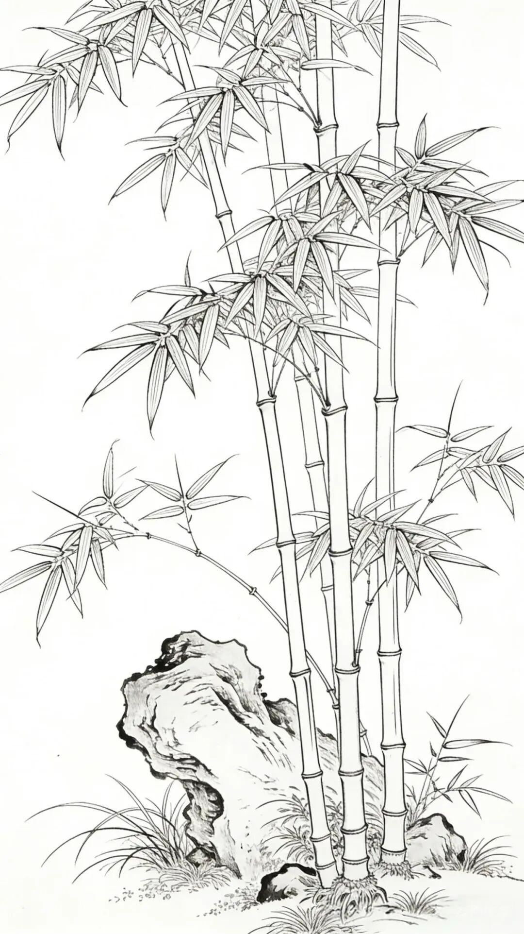 素材|竹报平安 附白描 绘画 素材