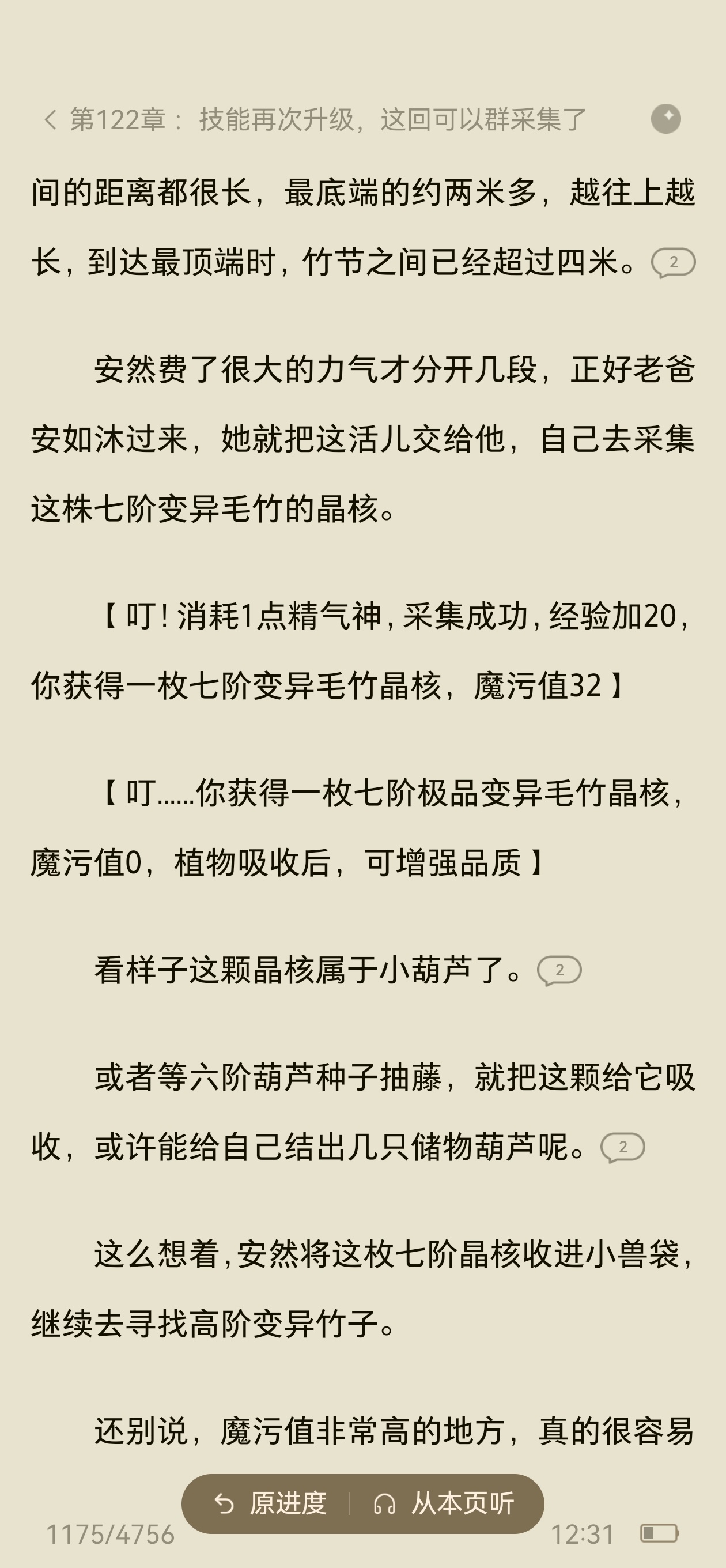 番茄这本也好看,我这两天看了三分之一了。之所以评分不高是因为刚完结没几天,全篇都是这个水准的话后面肯定能升上9.5分左右。有点像种田文升级流,女主的技能可以把别人不能使用的高污染资源采集净化,还能净化土地和水,再净化高污染高等级植物种植。还能采集吸收动植物和人的能力提升自己,比如力量、敏捷、体质、精神力什么的。 然后还伴随外界危机和人类带来危机,有很多仇人,种田与复仇还有升级流结合。