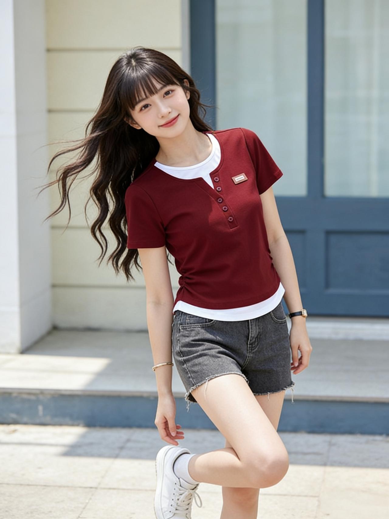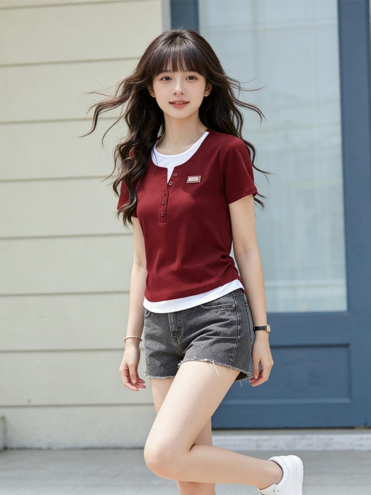一身红白撞色穿搭,瞬间点燃青春活力!红白条纹T恤,经典撞色设计,热情洋溢又不失清爽感,宽松的版型随性自在,领口微敞,露出精致的锁骨。下身搭配一条浅蓝色牛仔短裤,磨边设计增添几分不羁,高腰剪裁优化比例,尽显修长双腿。 脚踩一双白色帆布鞋,简约百搭,与T恤的白色条纹呼应,整体造型协调统一。再配上一顶草编帽,增添几分田园风情。红与白的碰撞,是热情与纯净的完美融合,牛仔的随性更添青春气息,这一身穿搭,仿佛夏日里的冰淇淋,清爽又甜酷,每一步都洋溢着少女的蓬勃朝气,闪耀着阳光般的魅力。哪些温柔的大地色系穿搭值得推荐 休闲套装穿搭穿出高级感 白红撞色穿搭