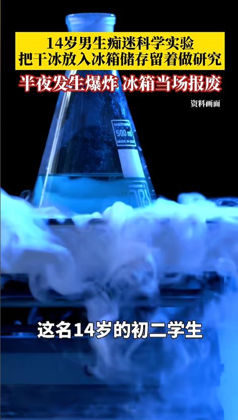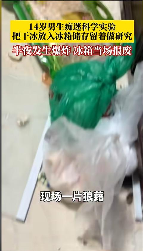 “万万没想到!”3月24日凌晨,浙江,一女子家中突然传出一声巨响,把家里人吓了一跳。女子循声赶到厨房一看,冰箱炸了,彻底报废,现场也面目全非。仔细一问才发现,儿子把做实验剩的干冰,密封后放进了冰箱,才导致了爆炸。网友:还好人没事! 喜欢科学实验是好事,但是,也要提前了解好安全常识,保证每一项实验材料能安全妥善的保存,不然,就可能酿出悲剧。 据媒体报道,纪女士的儿子今年14岁了,正在上初中,平时痴迷于科学实验,经常在家里各种鼓捣。这一天,他在网上购买了干冰,搁家里做了实验,结束之后,干冰还剩了一部分。 孩子秉着不浪费的原则,就把剩下的干冰密封后放进了冰箱的冷冻室,想着下次再用。没想到,半夜的时候,冰箱突然发生了爆炸。 纪女士听到动静,吓了一跳,赶紧去厨房看。眼前一片狼藉,冰箱被炸的面目全非,彻底报废,里面的东西也散落的到处都是。 了解完事情的前因后果之后,纪女士并没有责怪儿子,而是给他又普及了知识点。干冰保存需要放在专用的储存箱或者开口容器里面,还得要远离高温。 干冰的升华温度远低于冰箱的冷冻温度,在冷冻仓内依旧会升华,若将其保存在密闭容器中,很快就会因气压过高导致爆炸。 网友看后表示,经此一事,孩子在做实验的时候一定会更加小心,吃一堑长一智,也算是因祸得福吧。 还是要提醒家长朋友们,孩子喜欢实验是件好事,家长应当给予鼓励,但是不能放任孩子一个人去弄。过程中家长一定要陪同,给孩子做好安全护航! 信息来源:《14岁男生痴迷科学实验,把干冰放入冰箱储存留着做研究,不料半夜发生爆炸,冰箱当场报废!消防提醒:干冰升华会产生大量的气体,如果处于冰箱这样的密闭环境中,就有爆炸的风险》第1眼新闻