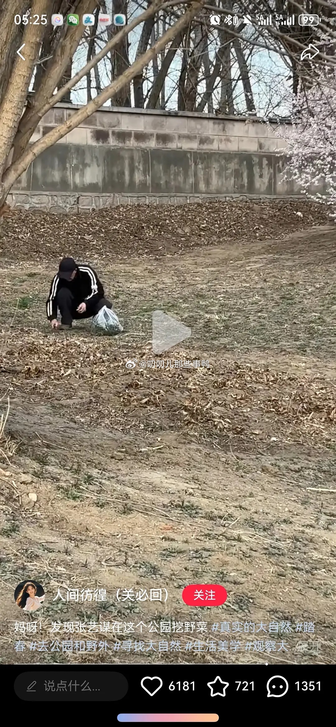 刷到老谋子挖野菜~😂😂