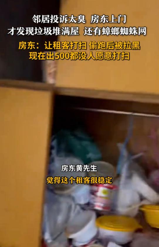 这是咋住的?重庆,一位房东把房子租给一名女生4年,近期接到邻居投诉说房子太臭,就上门查看,结果却发现对方把房子住成了垃圾屋,蟑螂、蜘蛛网遍地,可房客却直接拉黑失联,房东哪怕出500块钱都没人愿意上门打扫卫生。 重庆一位房东最近遇到了糟心事,他把房子租给一个女生整整四年,这四年里对方按时交租、到期续租,从没闹过幺蛾子,房东觉得这是天上掉下来的好租客,省心得很,四年里愣是没上门看过一次房。 结果前几天邻居打电话来,说那屋子臭得实在受不了了,房东赶紧联系租客,让她收拾收拾,电话刚打完,人就把他拉黑了,连个招呼都不打,直接失联。 房东拿着钥匙开门那一瞬间,整个人都懵了,不大的屋子里,外卖盒子垒得像小山一样,占了半个房间,地上桌上到处是垃圾,蟑螂满地爬,蜘蛛网挂得到处都是,那股味道冲得人脑仁疼。 更让人哭笑不得的是,房东想花钱解决问题,找了保洁公司,出价500块,愣是没人愿意接这单生意,保洁上门看了一眼现场,摇摇头就走了——这哪是打扫卫生,这得是清运垃圾场。 四年时间,这个女生怎么住下去的,外人想不明白,每天在垃圾堆里吃饭睡觉,外卖盒子堆到快顶到天花板也不扔,蟑螂在身边爬也视而不见。 甚至有人说是心理出了问题,可能是长期孤独,可能是压力太大,也可能是某种程度的抑郁——当一个人连收拾屋子的力气都没有的时候,她的生活大概率已经失控了。 但话说回来,房子是房东的,信任也是房东给的,四年不收打扰,按时交租就以为万事大吉,谁想到最后换来的是一座垃圾山,这500块的保洁费,估计只是清理费用的零头,屋子里的家具、地板、墙壁还能不能要,还得等垃圾清完才知道。
