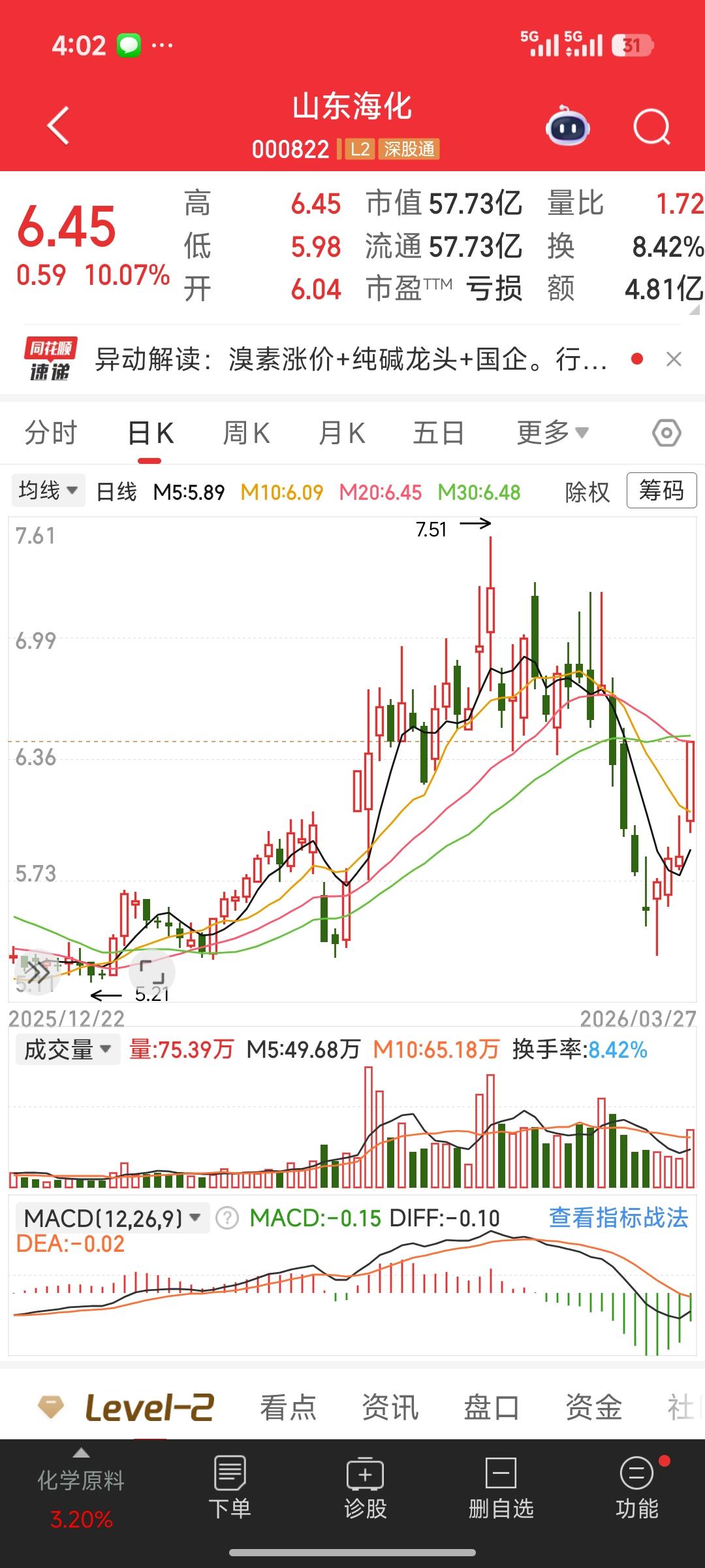 🔥溴素两周暴涨50%!复刻TMA神话,谁将成为下一个正丹? 溴素价格上演“火箭式”上涨:9天暴涨44%,单日跳涨4000元/吨,最新报价7.2万元/吨,较两周前的4.8万元/吨涨幅达50%,创下历史新高,与去年同期相比涨幅超120%。 本轮暴涨核心是海外断供+国内停产的供需错配:中东局势扰动导致进口溴素供应中断,国内多家企业装置检修停产,市场陷入“抢货行情”,价格弹性堪比2024年TMA行情。 💡核心投资标的 - 山东海化:国内溴素龙头,产能8000吨/年,是本次涨价最直接受益标的,业绩弹性最大。 - 山东鲁北:溴素产能约5000吨/年,充分享受价格上涨红利。 - 滨化股份:副产溴素业务,将随行业景气度提升获得增量利润。 ⚠️风险提示 - 价格高位波动风险:若海外供应恢复或国内装置重启,价格可能快速回落。 - 政策调控风险:若涨价过度影响下游产业,或引发限价等干预措施。 - 业绩兑现风险:部分企业溴素业务占比较低,涨价对整体利润贡献有限。 溴素回收 溴化钠价格 活性溴 溴素提取设备 溴素机组 溴代三嗪价格 十溴二苯醚价格 溴素储罐 溴素泵 氨肟化催化剂 溴已新 溴代三嗪批发 溴夫啶 溴酸钠 溴代三嗪批发商
