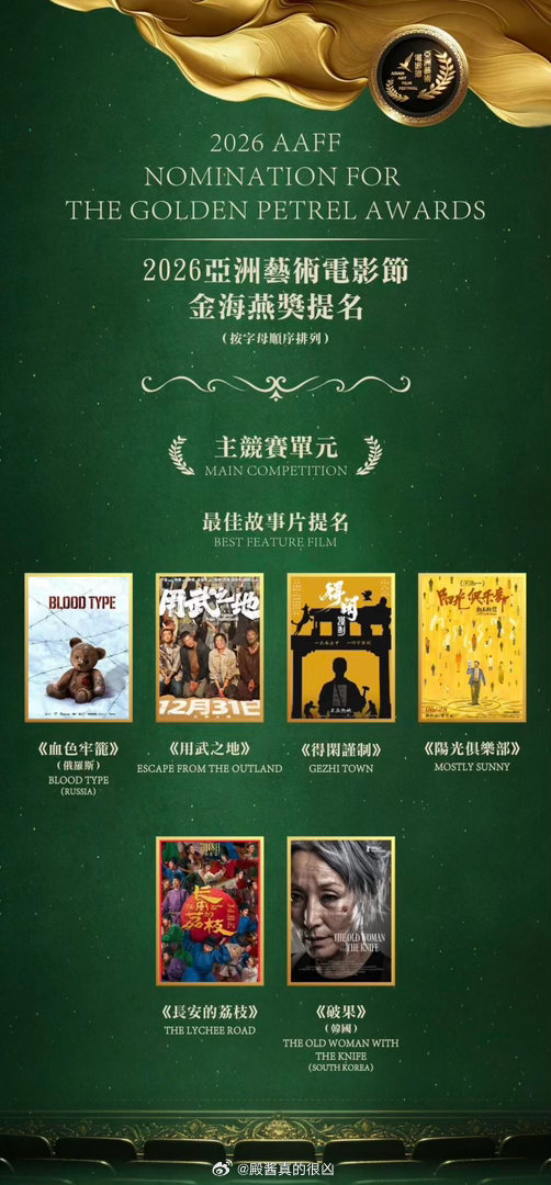 2026年亚洲电影艺术节金海燕奖提名公布恭喜《得闲谨制》获最佳故事片提名肖战获最佳男主角提名 孔笙获最佳导演提名兰晓龙获最佳编剧提名 肖战得闲谨制登猫眼娱乐财报