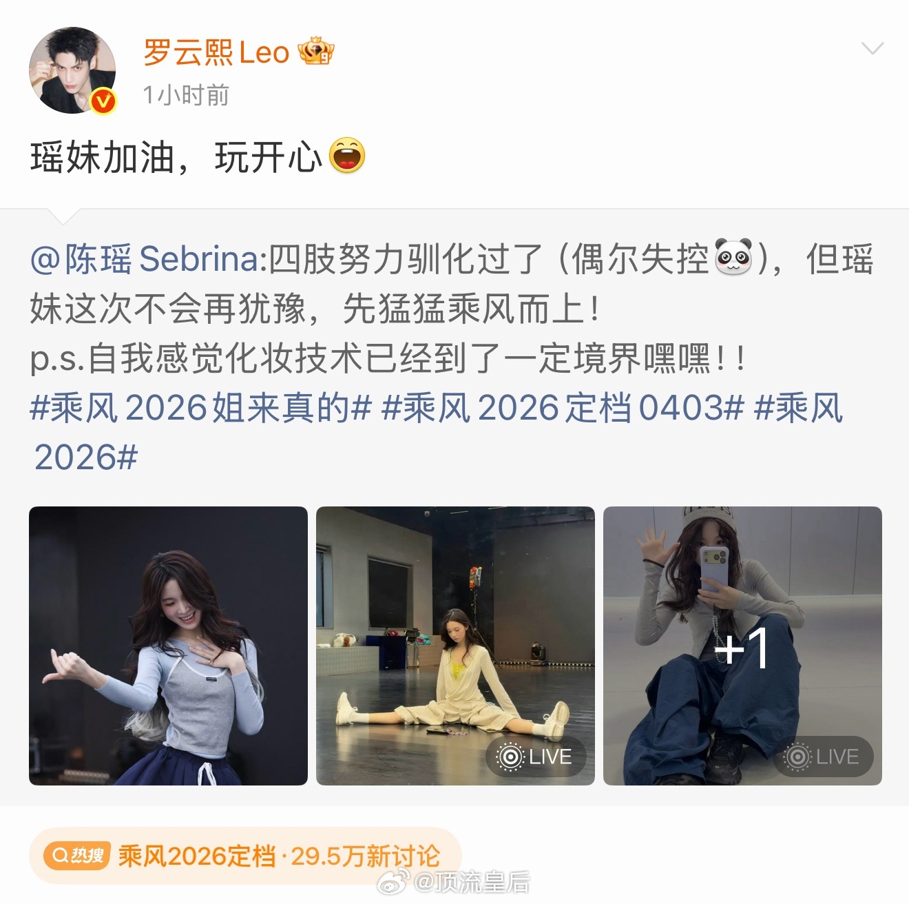 罗云熙、龚俊、方逸伦帮陈瑶宣传上乘风,合作过的同事们都很够意思。