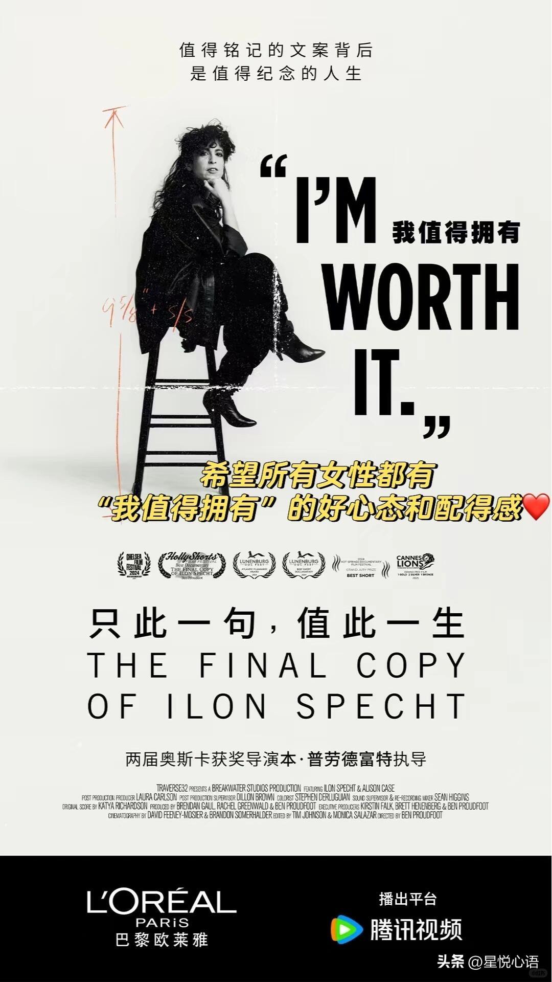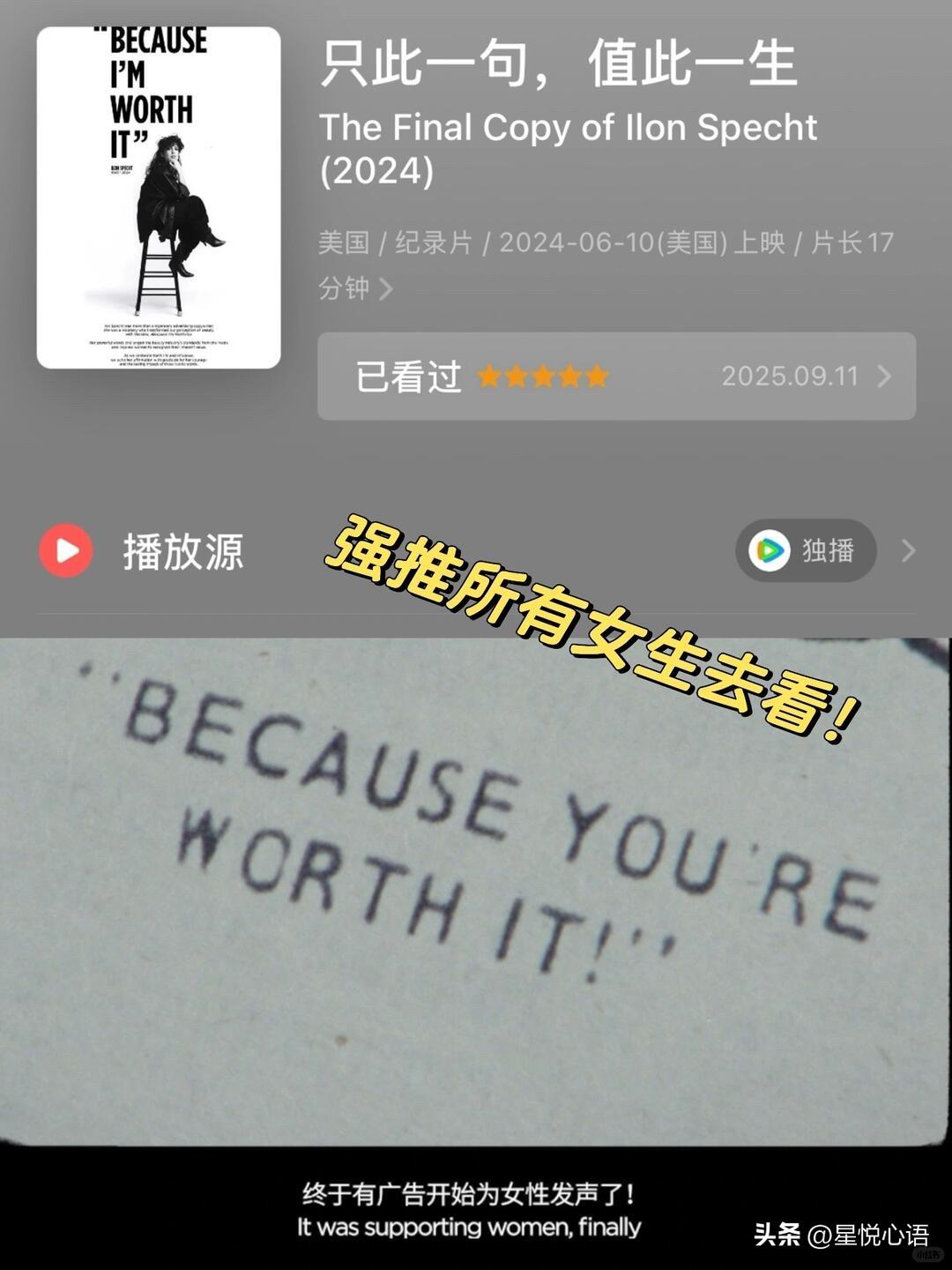 一句“我值得”,火了52年,看哭无数女生 一句slogan火遍全球52年。 每次听到,都忍不住鼻酸。 1971年的广告圈,全是男性主导。 女性形象,要么依附,要么讨好。 欧莱雅的染发剂广告,满是物化女性的创意。 只有女文案伊伦,站出来反抗。 她不愿女性,活在别人的眼光里。 她顶着所有压力,写下: I’m worth it 我值得拥有。 没有讨好,没有卑微。 只为告诉所有女生: 爱美,是为自己。 优秀,是为自己。 我们从不是谁的附属。 有人说,低谷时靠这句话撑过来。 有人说,终于敢大方爱自己。 这哪里是广告语。 这是刻进骨子里的女性觉醒。 是跨越半世纪的温柔力量。 愿我们都记得。 不必迎合,不必将就。 你本就值得最好的一切。 这份底气,永远属于自己。