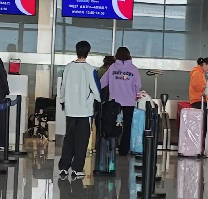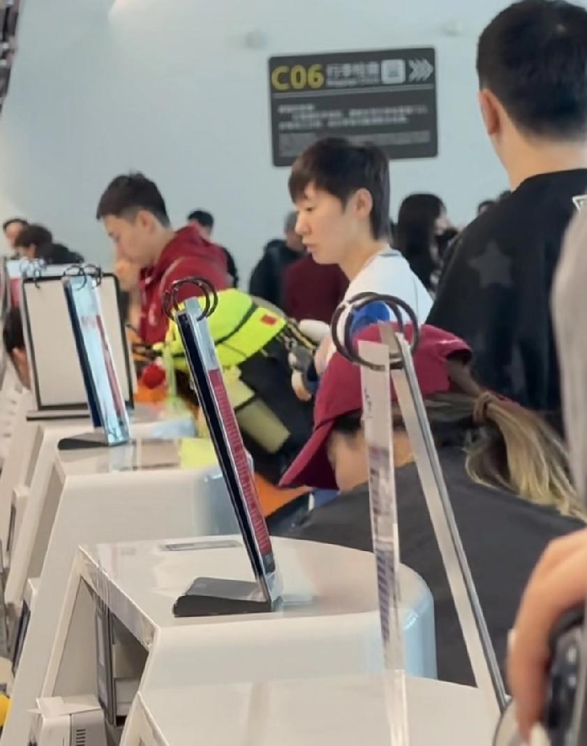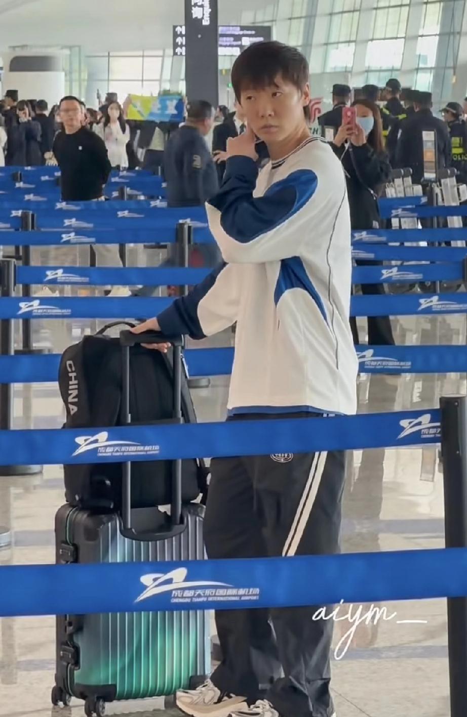 今天成都天府机场飞澳门准备参加澳门世界杯的王曼昱。身着一套李宁最新款运动套装,下午跟国乒团队一起坐班车到达机场。这次跟赛的队员有徐奕、王晓彤、韩菲儿、何卓佳。曼昱身边还是有徐奕妹妹随时陪伴。 孟队医和任浩教练也跟赛,但是体能教练没有跟赛。