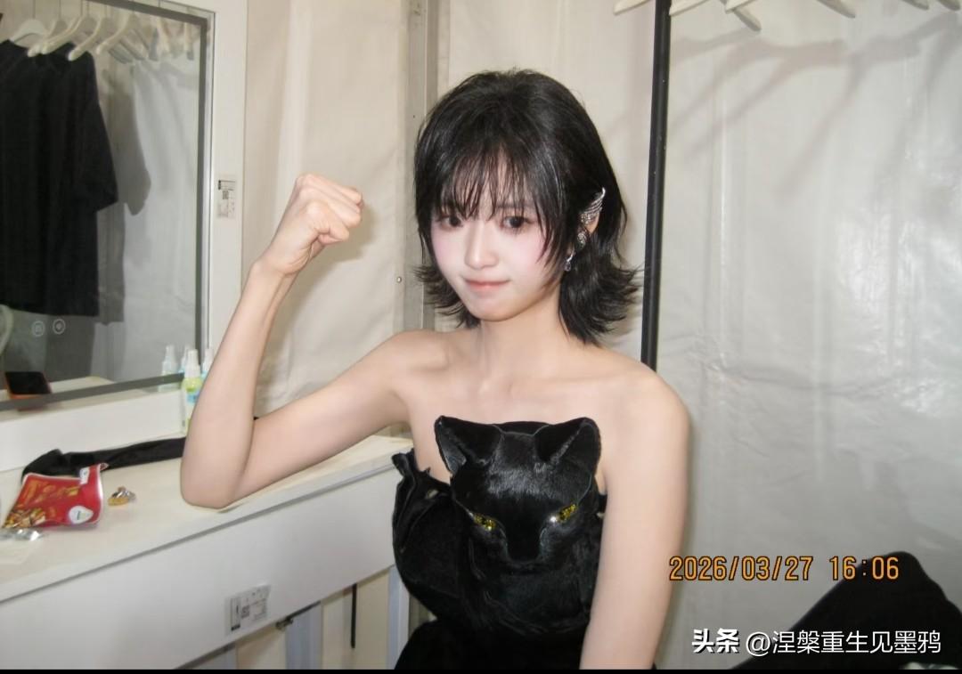 孙千这组“黑猫精灵”造型太绝啦 她穿的黑色抹胸裙太有设计感了,胸前的黑猫装饰(黄眼睛超亮眼)搭配黑色长手套,瞬间把“小恶魔”的俏皮和优雅融合得恰到好处。 短发+精灵耳饰的搭配,更是让整个造型的“精灵感”拉满 孙千一会儿扮出“小爪子”的鬼马姿态(仿佛在模仿小猫咪),一会儿用温柔的手势轻触脖颈,还有握拳、托脸、侧头这些小互动,每一个表情都把少女的灵动和娇憨拿捏得死死的。
