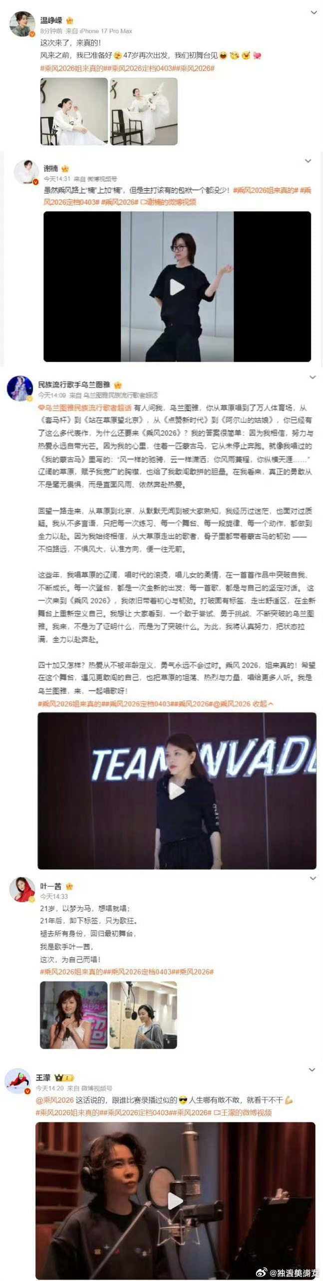 这届浪姐太会写了一纸宣言,一腔热忱。姐姐们用文字写下初心与向往,有突破有坚守,满是温柔与力量,静待她们在乘风舞台上闪闪发光。乘风2026