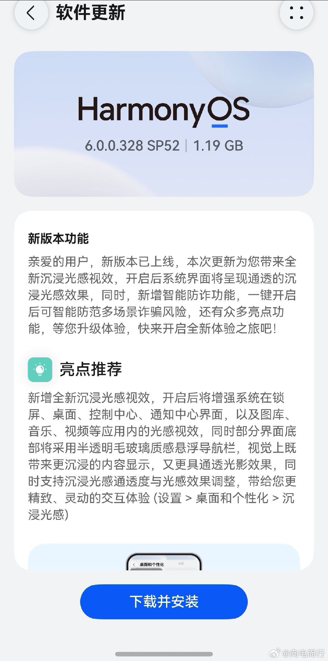 6.0.0.328 SP52分批更新中,沉浸光感视效下放harmonyos6