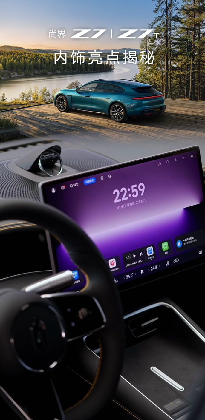 今天尚界Z7内饰亮点揭秘直播一开播,尚界Z7又火出圈了!尚界Z7内饰亮点揭秘超凡粉、晚山新绿车色首次亮相颜值拉满,猎装版Z7T气场全开,闪金黑、缥云杏内饰高级又耐看。车内随动屏智能互动、灵感橱窗放手办超有个性,20多处储物收纳口红、雨伞,PUSH-PUSH小挂钩挂咖啡奶茶不撒漏,1/4螺纹接口随手拍vlog记录生活。把热爱与实用全装上车,氛围感、快乐感一步到位,预订24小时订单破25000台,实力太能打,建议赶紧到店体验抢先预订! 尚界Z7随行美容舱